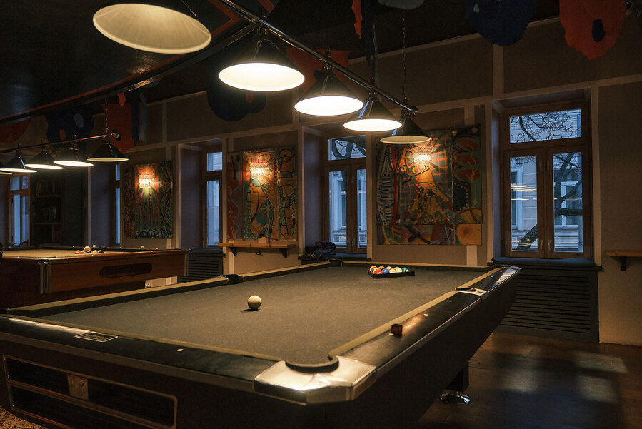 В Китай-городе стол поставили в веселом баре Escapist, на Мясницкой — в только что открывшемся баре Neighborhood с завтраками, танцами, бургерами и пивом, на «Новослободской» — в Rudi, новом итальянском бистро Леры Шулюмовой и Павла Казьмина, основателей Tilda, известной изобретательным меню и расслабленной атмосферой. Даже в кинотеатре «Художественный» появился бильярдный стол, напоминая о советских привычках: бильярд до 1980-х был неизменным атрибутом домов отдыха и павильонов в парках культуры. В Петербурге стол есть в AF Brew Taproom — огромном пивном тапруме на территории бывшего завода «Степан Разин» с огромным выбором крафтового пива и едой в индийском стиле.