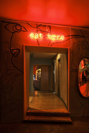 Проще всего с едой обошлись в бильярд-клубе Double Kiss: его открыли в январе этого года на втором этаже «Депо» на «Белорусской». Желающие могут спуститься по лестнице и выбрать любое блюдо из меню десятков корнеров, которые «Депо» составляют. Поддерживая имидж места с правильным вайбом, здесь планируют поддерживать современных художников и устраивать их выставки, а также организовывать вечеринки.