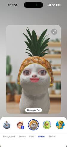 Интерфейс у Botim максимально нейтральный, если не сказать скучный: много белого, простые иконки, хотя за элементы цвета Blueprint blue, конечно, спасибо. Зато в видеозвонках можно включить «живой» аватар — например, стать женщиной в шапочке из фольги или котом в шапке из ананаса — и заодно переместиться на виртуальный фон с видом на «Бурдж-Халифу».