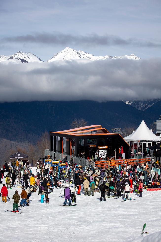 Отдельным событием стала «WINLINE рейл-джем-сессия» — соревнование на самом длинном рейле фестиваля, где райдеры по очереди показывают трюки на периле. Самый длинный рейл в России, который компания строит для фестиваля, в этом году вырос до 72 метров. Для сравнения: в 2024-м его длина составляла 36 метров, в прошлом году — 54. Так что этот сезон оказался рекордным и по масштабу конструкции, и по вниманию к ней со стороны гостей.