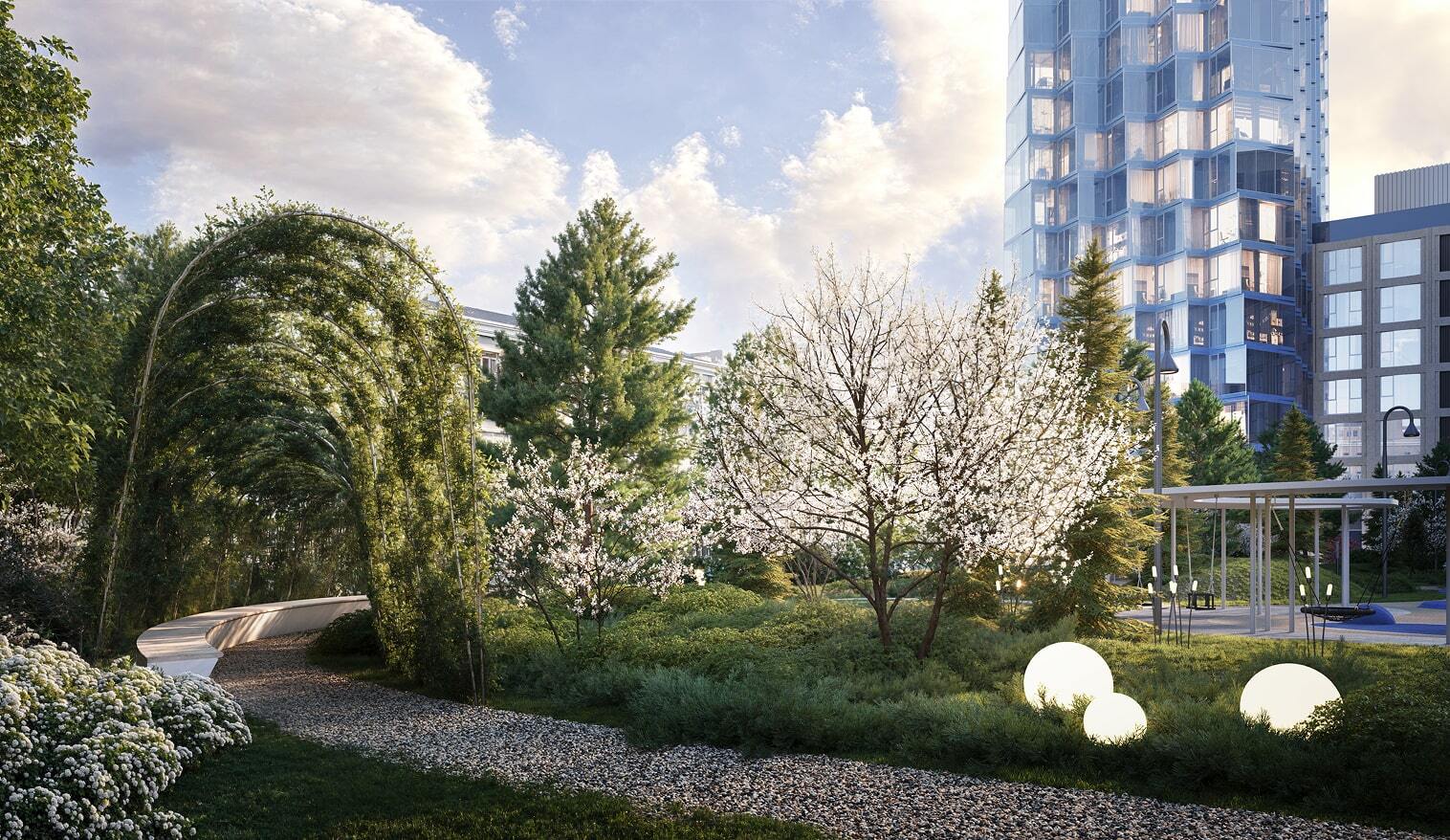 Для тех, кто хочет чувствовать ароматы альпийского сада даже в центре мегаполиса, во дворе «Монблан» разбит приватный круглогодичный парк в альпийском стиле, где будут расстилаться запахи хвои, лилий, гиацинтов и гортензий сорта Mont Blanc.