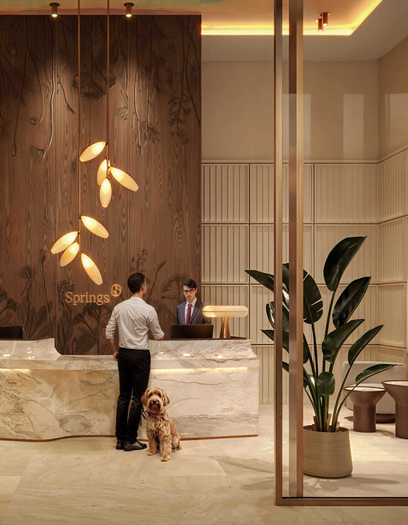 Лобби и ресторан на первом этаже — это центр притяжения для встреч и качественного отдыха. Гранд-лобби из натуральных материалов служит местом для пауз и непринужденного общения, перенося атмосферу домашнего спокойствия за пределы квартиры. А ресторан позволяет сменить обстановку и провести вечер с близкими, не выходя за территорию дома. Эти пространства дополняют концепцию Springs, где каждая деталь поддерживает ощущение эмоционального комфорта и позволяет оставаться в своем месте силы, не выпадая из привычного ритма жизни.