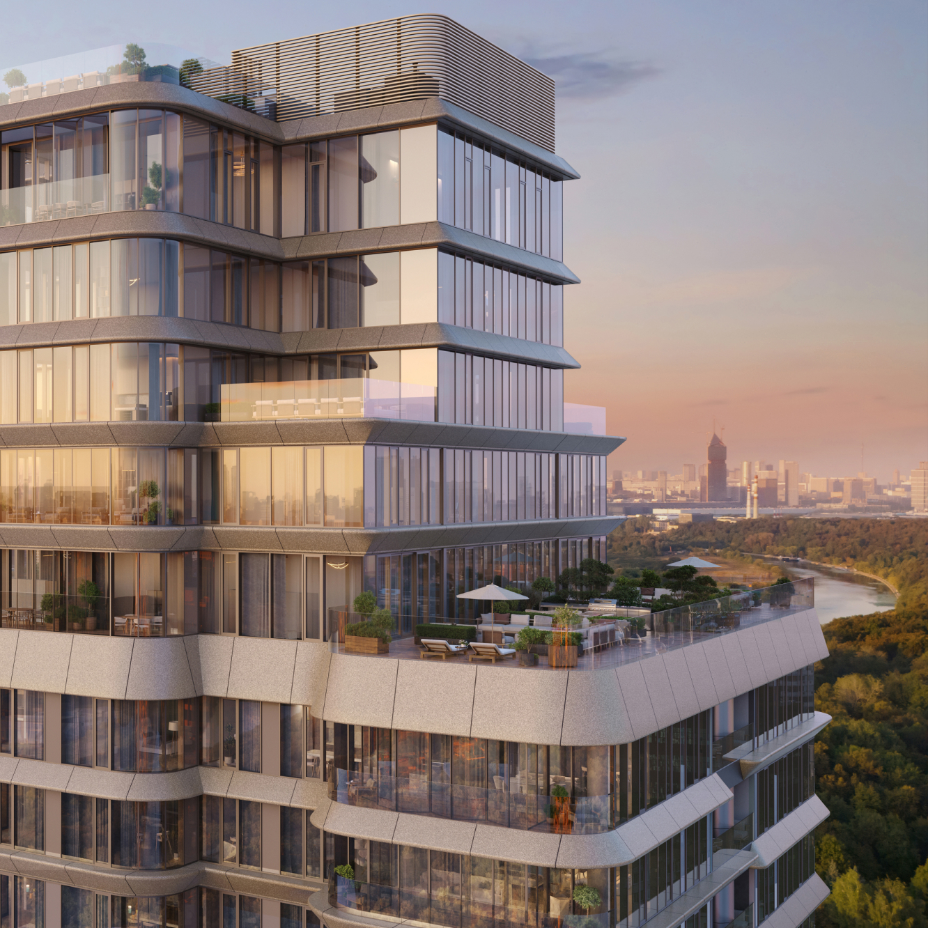 Бионическая архитектура фасада — это линза, преломляющая город и природу в одной точке: здание не конфликтует с ландшафтом, а вступает с ним глубокий диалог. Плавные линии здания и озелененные террасы органично вписываются в очертания Филевского парка. Футуристичный дизайн дополнен редкими решениями: трансформируемым остеклением балконов и дизайнерским паркингом с отделкой натуральным камнем.