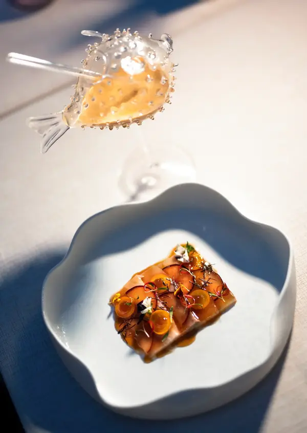 Все рестораны отеля — включая The Legend, где можно позавтракать воздушным омлетом с копченым лососем и смузи из местных фруктов, и The Nast, где особенно гордятся блюдами с морепродуктами и настоятельно рекомендуют отведать местную звезду, черного снеппера, — расположены на высоте, так что каждый прием пищи здесь, что называется, с видом. Закат лучше всего встречать в месте Diva, спроектированном будто бы Филиппом Старком (на самом деле шипастые, как рыба-еж, стулья и люстры — дело рук француза Марка Хертрича): в 2024 году ресторан отметили наградой World Luxury Restaurant Awards как лучший среди fine-dining-заведений в регионе Индийского океана.