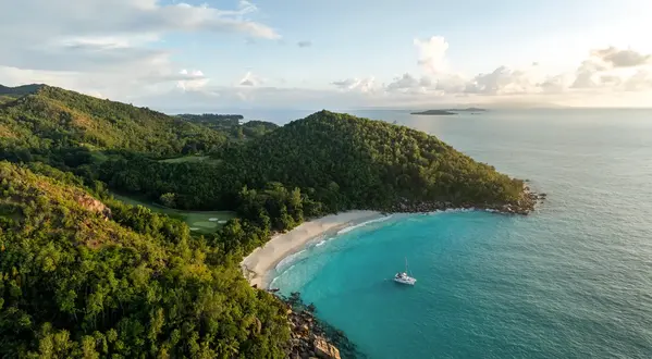 Этой весной россияне массово ринутся в ОАЭ, Египет, Турцию и Таиланд, так что если отдых вплотную с соотечественниками вам не мил, да и в сторис хочется что-то посвежее «Бурдж-Халифы», пирамид, аниматоров и мшистого камня из «Джеймса Бонда», присмотритесь к Сейшельским островам. За последний год популярность направления ощутимо возросла, при этом снятые на архипелаге баунти-пейзажи и близко не замылили глаз так, как, скажем, мальдивские или балийские. Впрочем, лететь на Сейшелы следует не только ради белого песка и лазурной воды, но и чтобы попробовать забить мяч в лунку с 470-метровой высоты, погладить гигантских двухсотлетних черепах и почувствовать себя Робинзоном Крузо. Вот где конкретно можно это сделать.