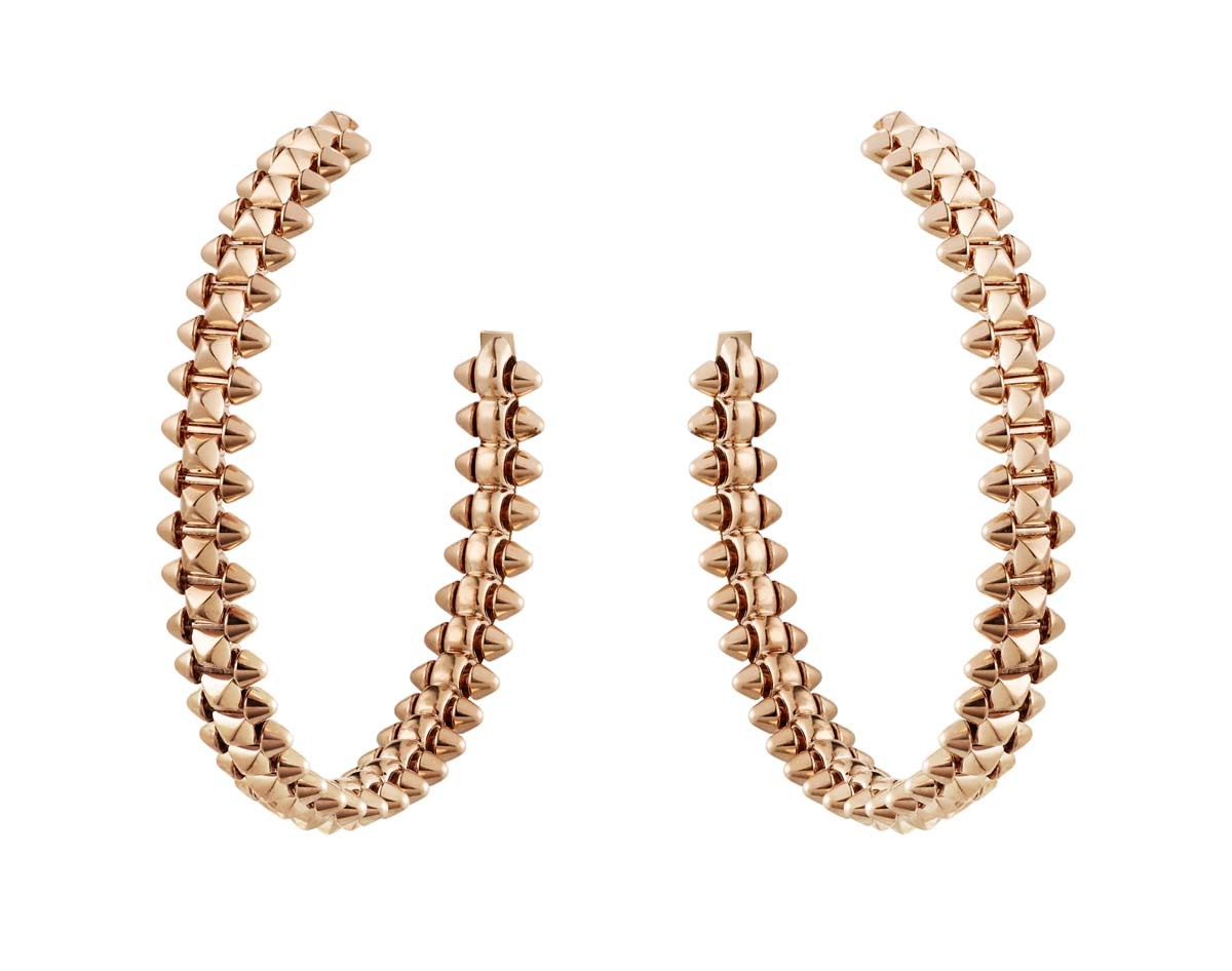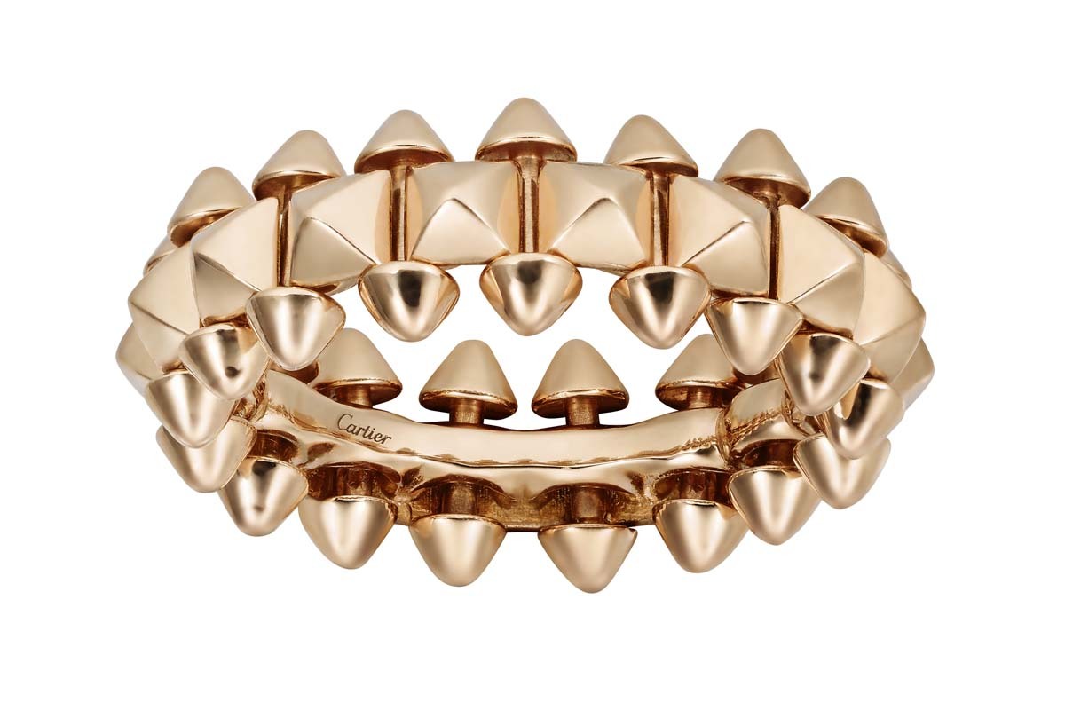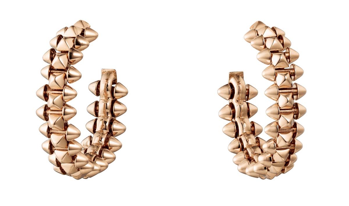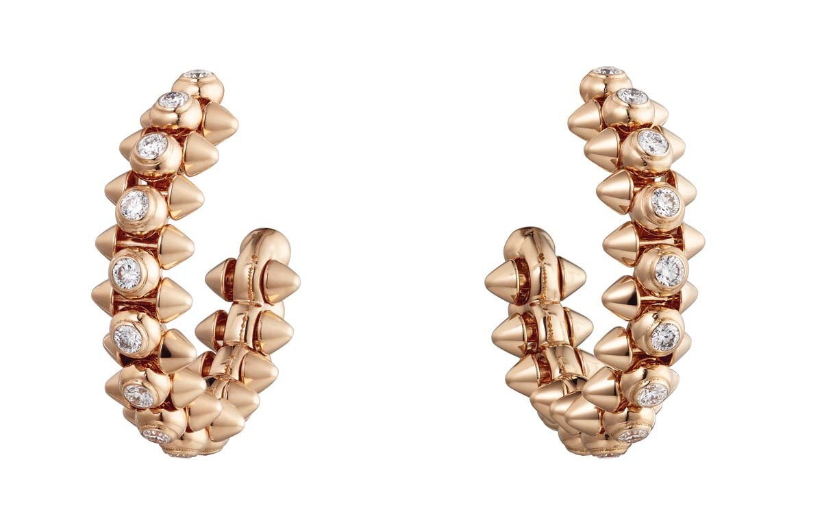 Cartier выпустили новую ювелирную коллекцию Clash de Cartier, в которую вошли 15 украшений геометричных форм. Они выполнены из розового золота, часть украшена бриллиантами, а также есть браслет, кольцо и серьги с шариками красного коралла. В новой коллекции три классических для Cartier декоративных элемента – шипы, бусины и квадратные clou carré – использованные в новом прочтении. За счет сочетания острых и круглых форм, геометричных частей и их подвижного соединения (его обеспечивает шарнирный механизм, разработанный в мастерской Cartier), коллекция отражает идею дуальности. Эту же идею продолжает кампания, главной героиней которой стала актриса Кая Скоделарио.