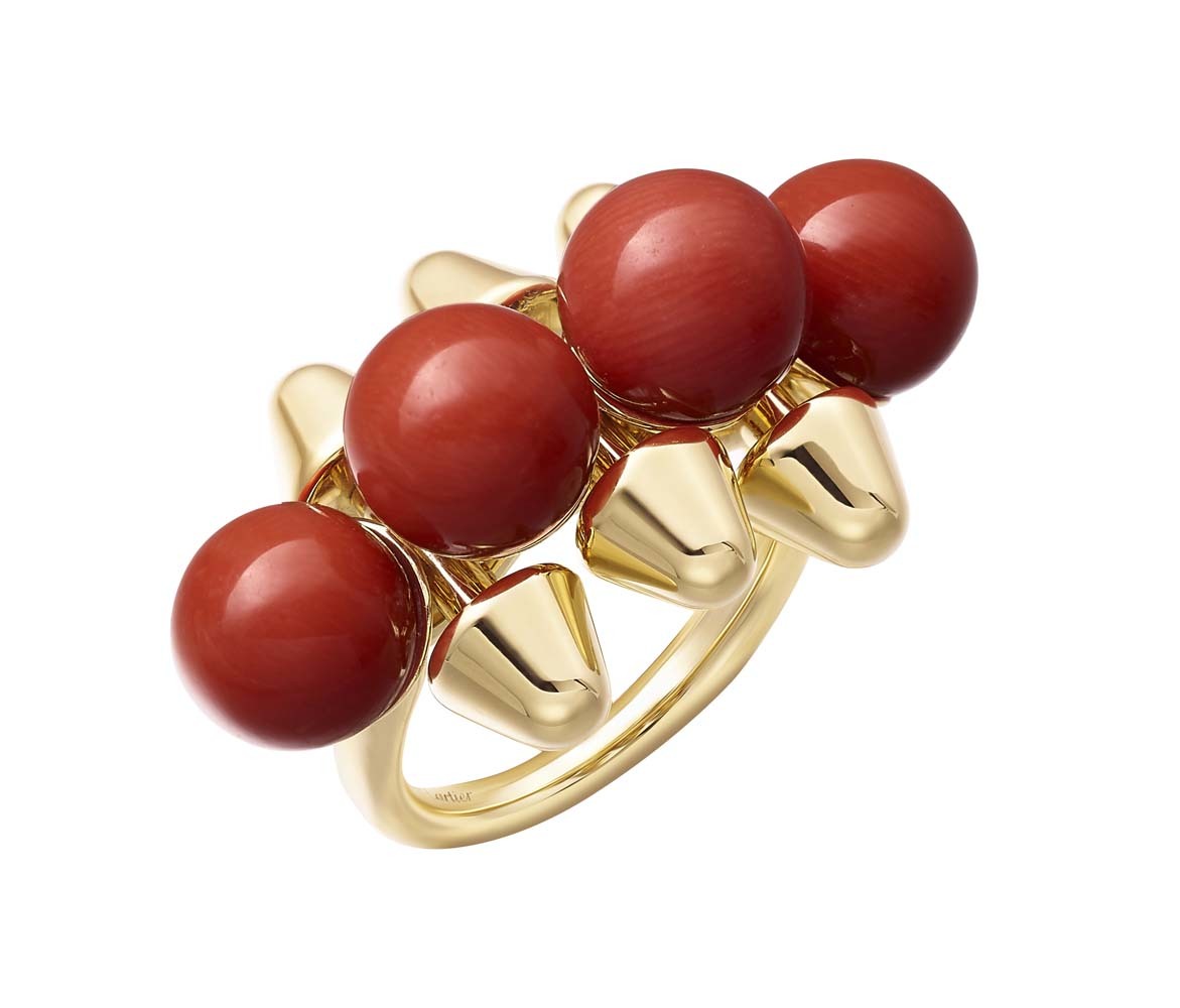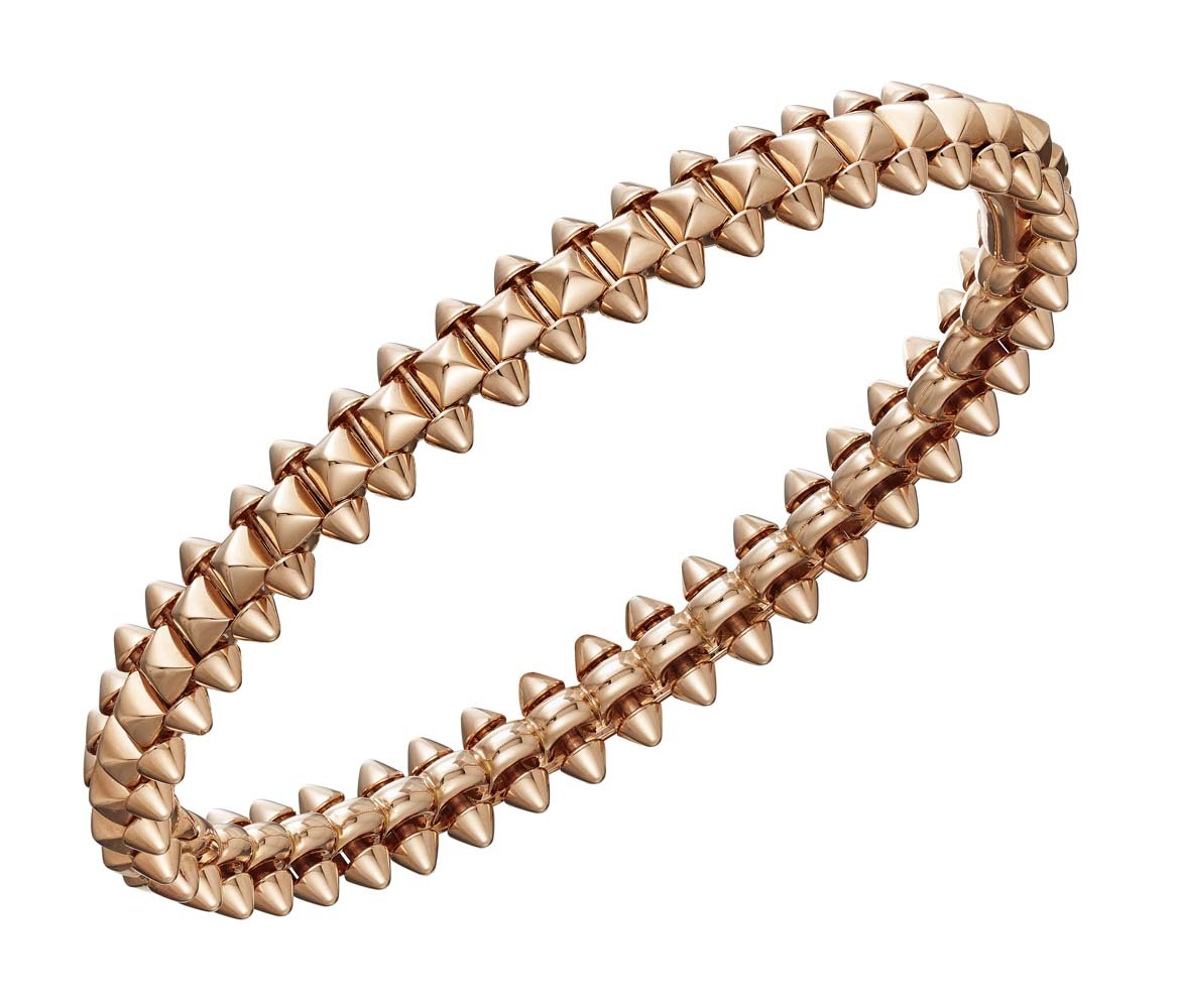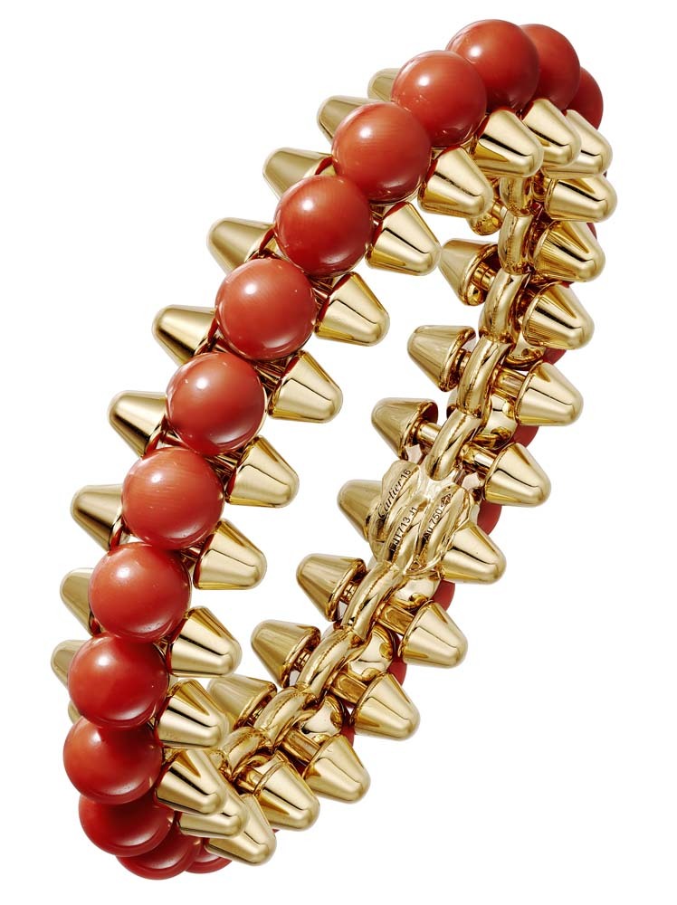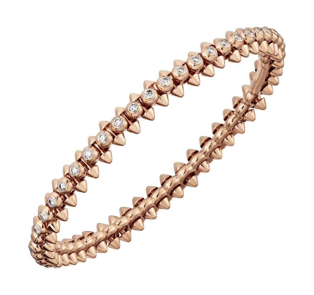 Cartier выпустили новую ювелирную коллекцию Clash de Cartier, в которую вошли 15 украшений геометричных форм. Они выполнены из розового золота, часть украшена бриллиантами, а также есть браслет, кольцо и серьги с шариками красного коралла. В новой коллекции три классических для Cartier декоративных элемента – шипы, бусины и квадратные clou carré – использованные в новом прочтении. За счет сочетания острых и круглых форм, геометричных частей и их подвижного соединения (его обеспечивает шарнирный механизм, разработанный в мастерской Cartier), коллекция отражает идею дуальности. Эту же идею продолжает кампания, главной героиней которой стала актриса Кая Скоделарио.