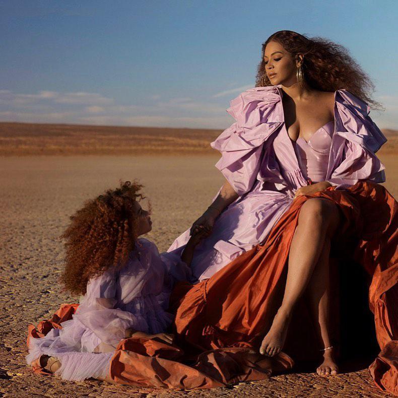 Один из самых трогательных моментов клипа – появление в кадре 7-летней Блю Айви, старшей дочери Бейонсе. Ее персональный стилист Мануэль А. Мендес выбрал для этого сиреневое платье Microwave, которое стало парным нарядом к лавандово-красному кутюрному платью Бейонсе Valentino.