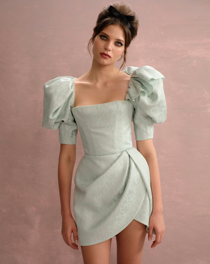 Ulyana Sergeenko показали капсульную коллекцию Evening 2020. В нее вошли бархатные, жаккардовые и шелковые платья. Отличительными чертами предметов являются узнаваемые для бренда Ульяны Сергеенко корсеты, рукава-фонарики и детали, акцентирующие внимание на талии. Вещи украшают рюши, вставки из кружева, оборки и банты. В палитру вошли черный, белый, розовый, фисташковый и мятный оттенки.