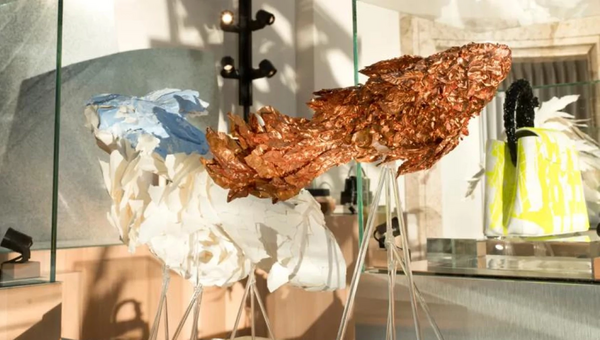 Louis Vuitton представили четырехметровую скульптуру рыбы, разработанную архитектором Фрэнком Гери. Бренд также выставил эксклюзивные модели сумок, дизайн для которых также разрабатывал Гери.
