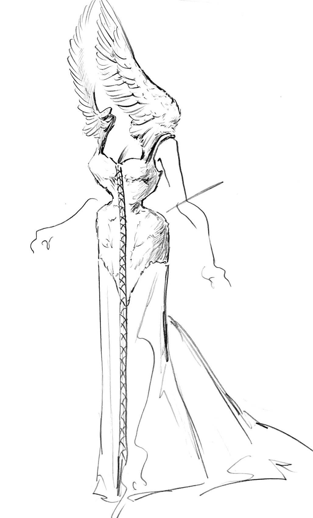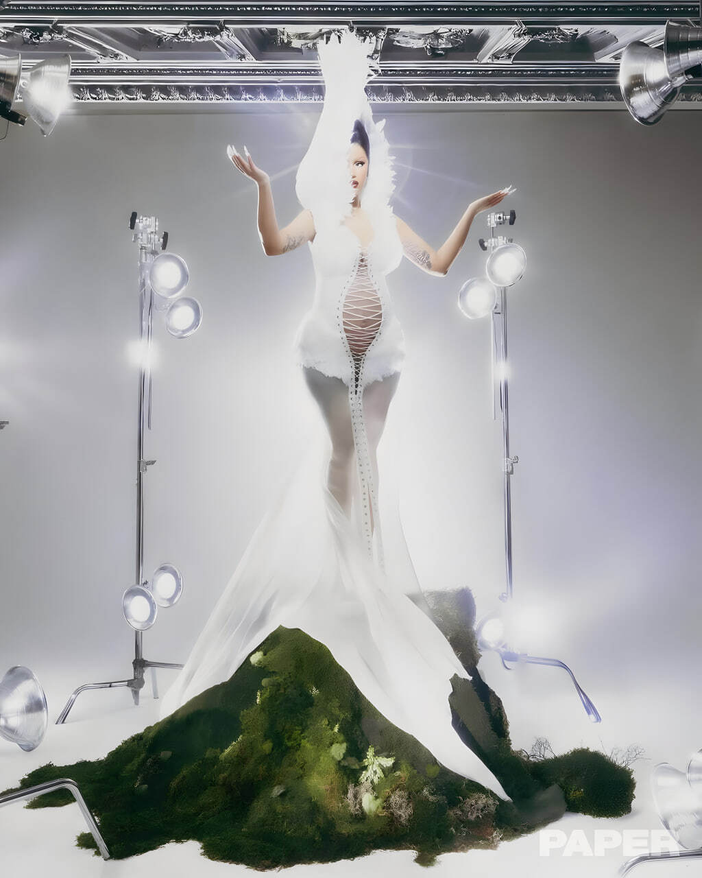 Изначально белое корсетное платье с конструкцией в виде крыльев создавалось для стилистки Вики Салават — она снялась в нем беременной для издания Собака.ru. Стилисты Cardi B, давно подписанные на Салават, обратили внимание на эффектный образ и связались с Мигмуном, не поделившись, однако, главной новостью: певица тоже ждет ребенка.
