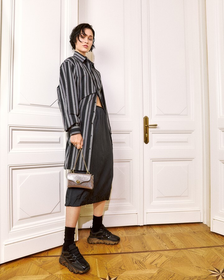 В коллекцию вошли кроссовки с меховой отделкой, кеды, хайкеры с леопардовыми вставками, массивные кроссовки и утепленные дутые ботинки. Главный акцент в коллекции сделан на контрастах: между уютом и нарочитостью, мягкими и жесткими линиями, повседневным и театральным.