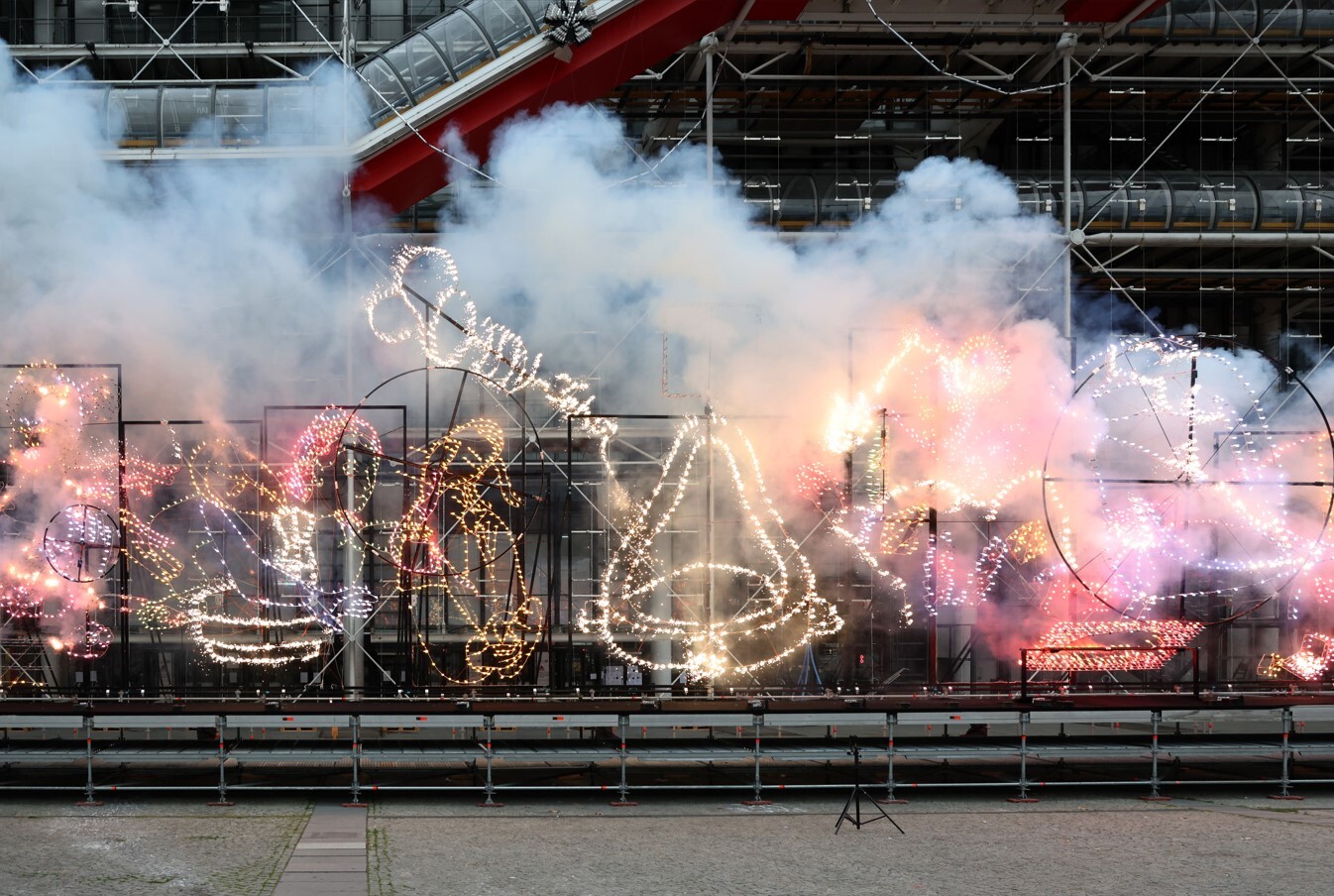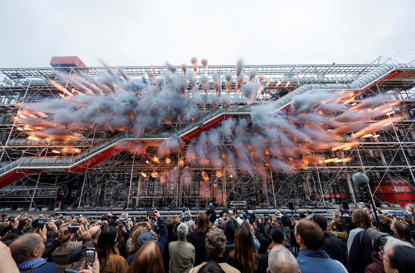 Чтобы создать цветное полотно из пороха для 20-минутного шоу, Гоцяна использовал собственную ИИ-модель. По словам куратора выставок Жерома Нетра, впервые в истории фасад Помпиду стал частью художественного произведения.
