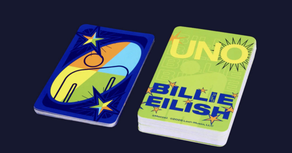 Билли Айлиш совместно с компанией Mattel выпустила собственную версию игры Uno с обновленным набором правил. Производители предлагают совмещать карточки из разных колод, чтобы разнообразить игровой процесс. Так, в наборе Айлиш, например, есть карточки, которые позволяют организовать дополнительный ход, передать карту другому игроку или даже заставить оппонента раскрыть свои карты.
