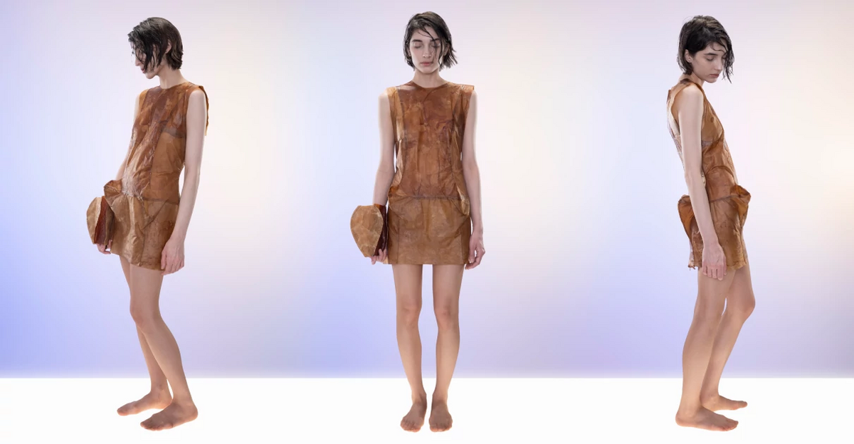 Рассматриваем платье из биокожи в коллекции дизайнера Екатерины Челбаевой. Именно ее The Blueprint назвал победительницей в категории «Мода» на премии Dafes, которую одноименная конкурсная платформа и Школа дизайна НИУ ВШЭ вручают за проекты в сфере дизайна, искусства, моды, образования и креативного предпринимательства.