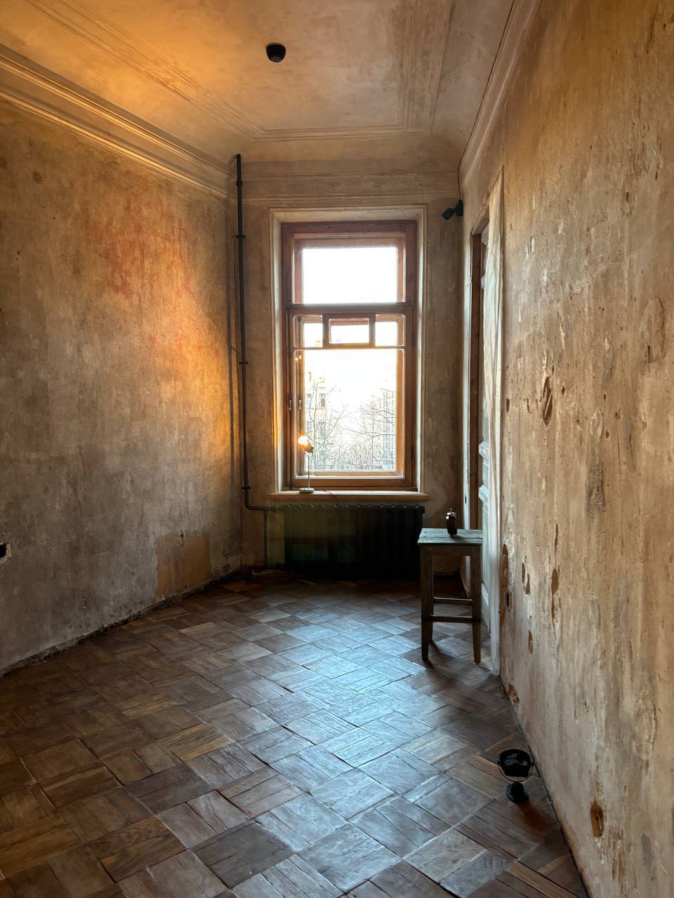 Квартира принадлежала Александру Введенскому с 1914 по 1936 год. Находится она на Съезжинской улице: стены и потолки помещений укрепили, а сохраненные в ходе реставрации слои обоев, газет и росписей поместили под музейное стекло.