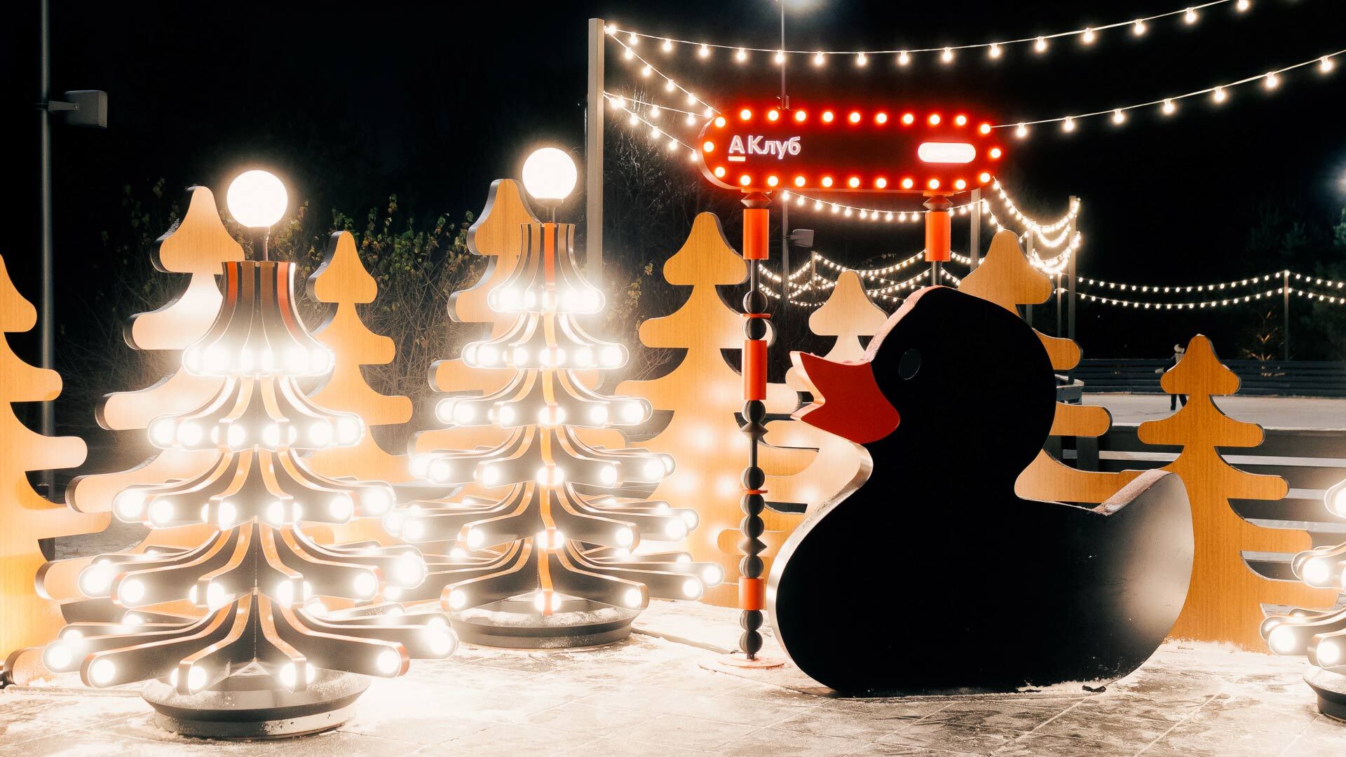 Пространство The Rink уже зарекомендовало себя как одна из популярных зимних локаций, куда приезжают за атмосферой и ощущением отпуска. Лаундж А-Клуба станет центральным элементом локации. В нем разместят новогоднюю инсталляцию с маскотом сообщества — черной уточкой, а также зону отдыха с шезлонгами, фотобудку и «почту Деда Мороза». Для посетителей предусмотрено специальное сезонное меню.