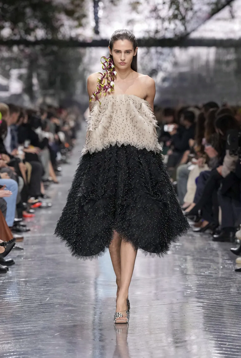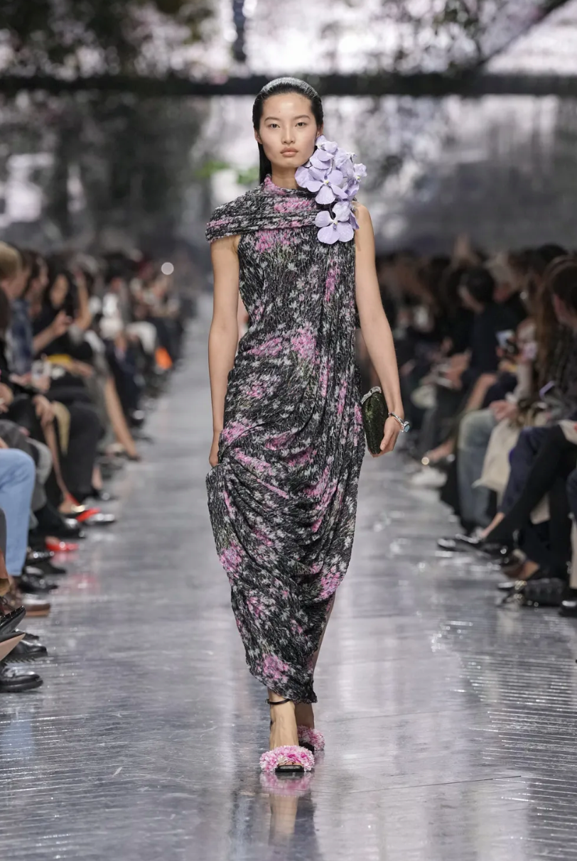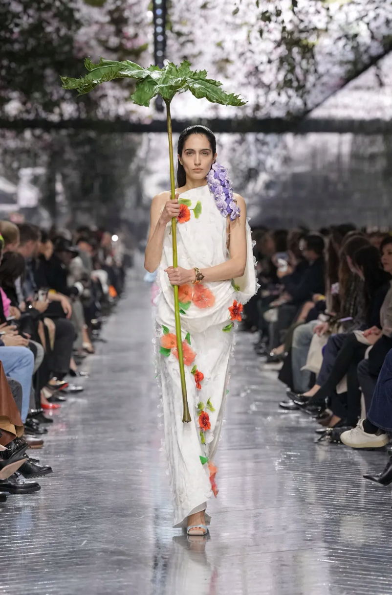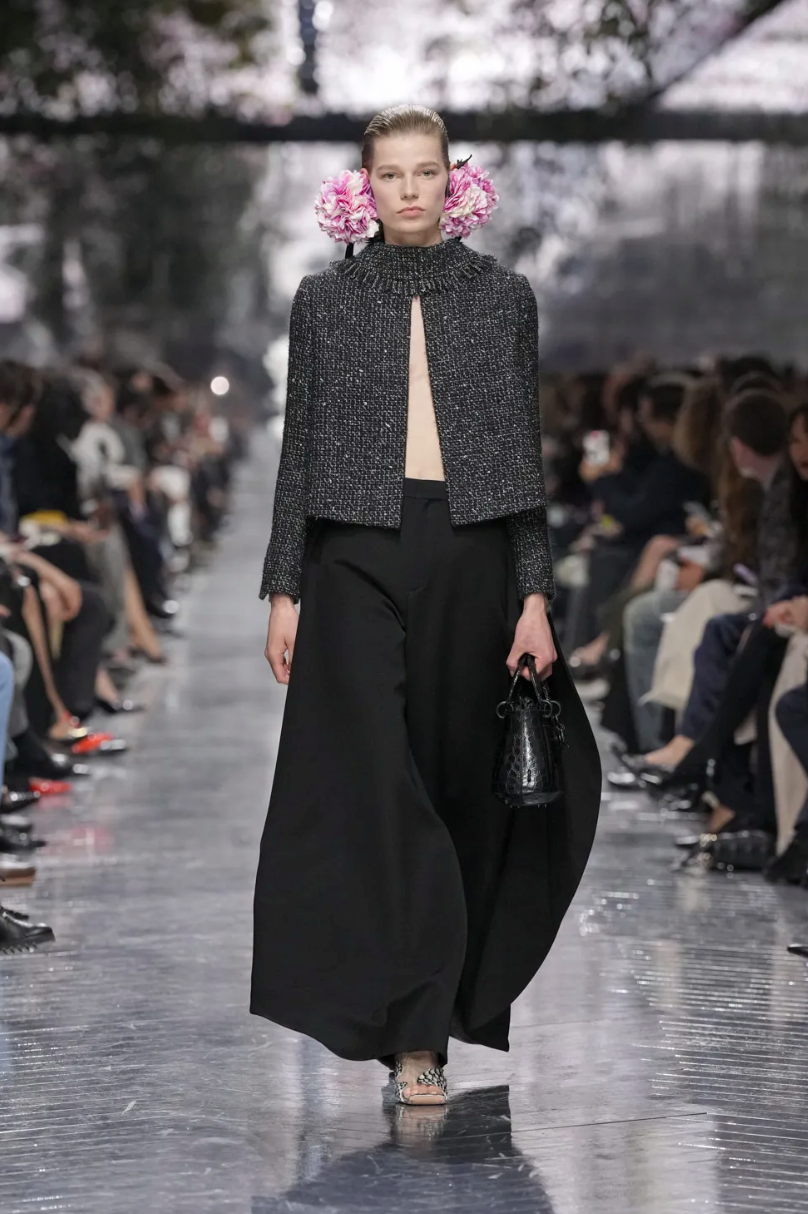 Центральной темой коллекции стали цветы. Тут можно было бы пошутить в духе Миранды Пристли (Цветы? Весной? Оригинально!), но флористические мотивы всегда были заложены в визуальный язык Dior и тесно связаны с семейной историей основателя модного дома. Как минимум, первая коллекция 1947 года называлась Corolle (фр. «венчик цветка»).