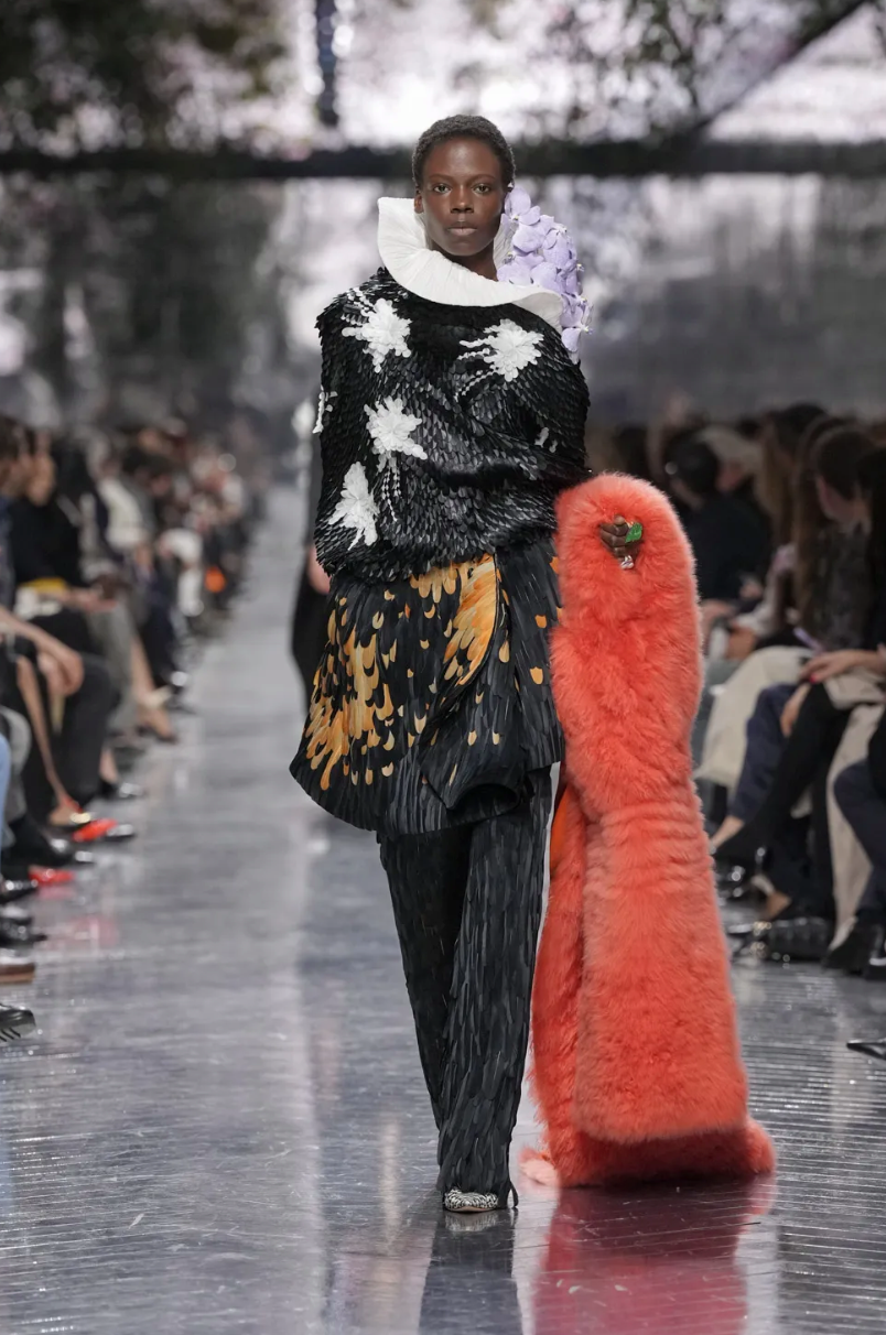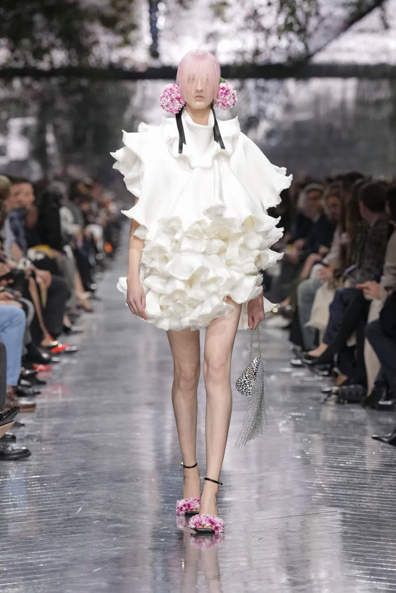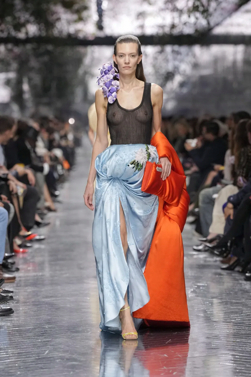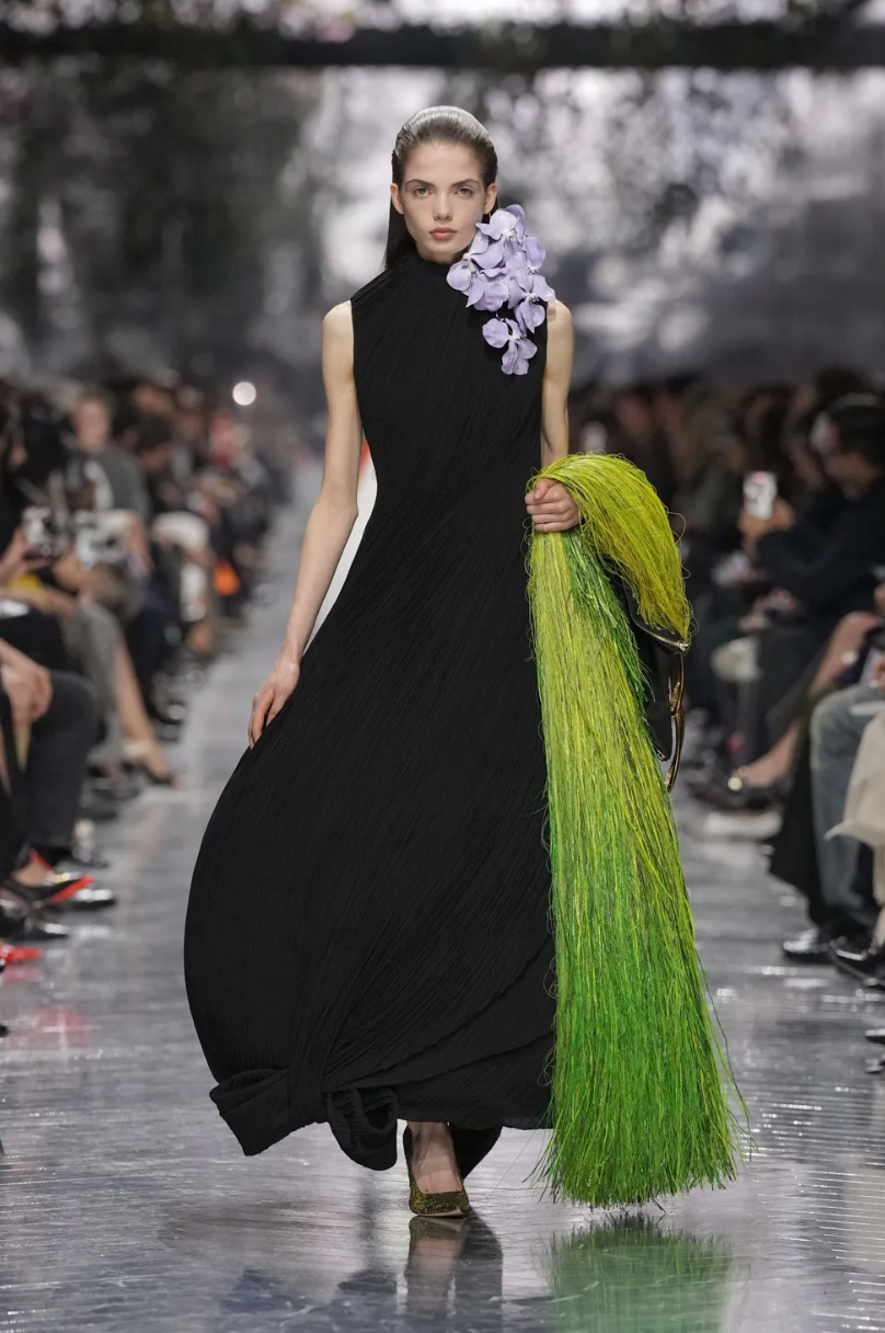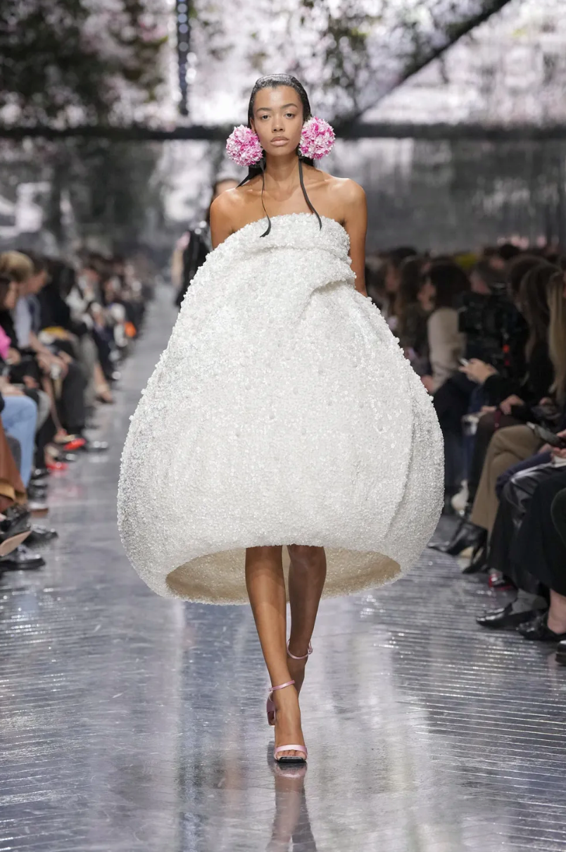 Центральной темой коллекции стали цветы. Тут можно было бы пошутить в духе Миранды Пристли (Цветы? Весной? Оригинально!), но флористические мотивы всегда были заложены в визуальный язык Dior и тесно связаны с семейной историей основателя модного дома. Как минимум, первая коллекция 1947 года называлась Corolle (фр. «венчик цветка»).