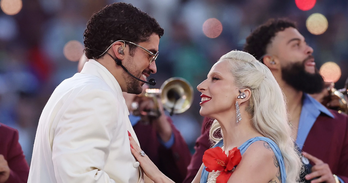Bad Bunny выступил на «Супербоуле» — в Zara и вместе с Леди Гагой