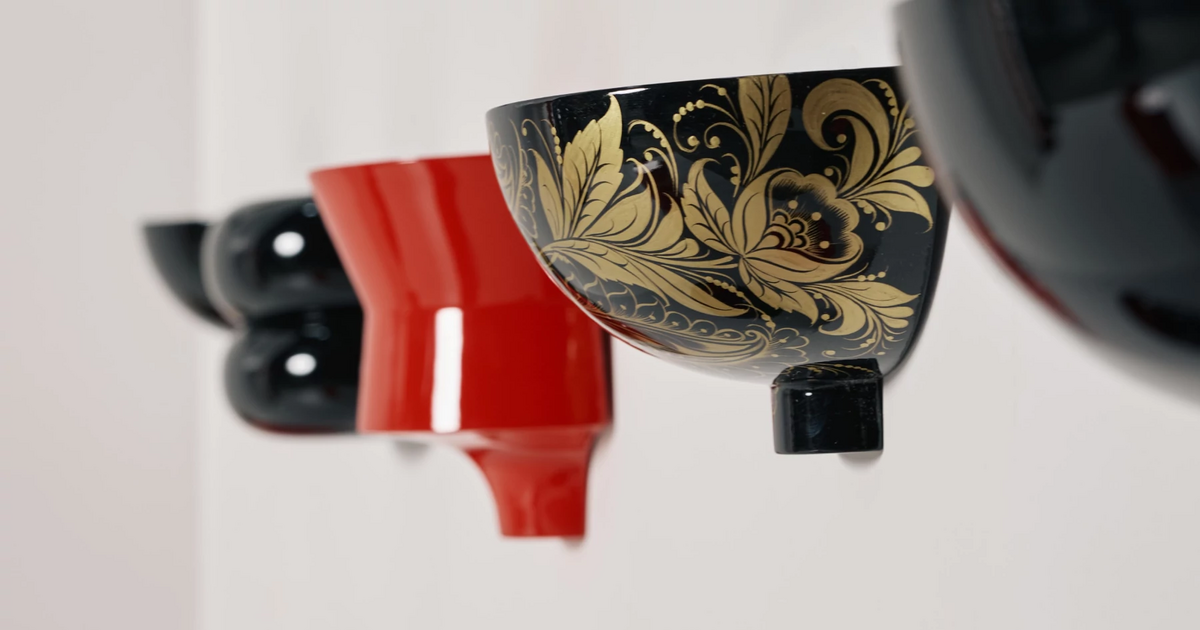 Для Димы Логинова, известного сотрудничеством с крупными международными брендами, обращение к хохломской росписи стало первым подобным опытом. В коллекции он интерпретировал традиционные узоры через форму и пластику предметов. Все изделия были вручную расписаны мастерами фабрики «Хохломская роспись» в городе Семенов Нижегородской области.