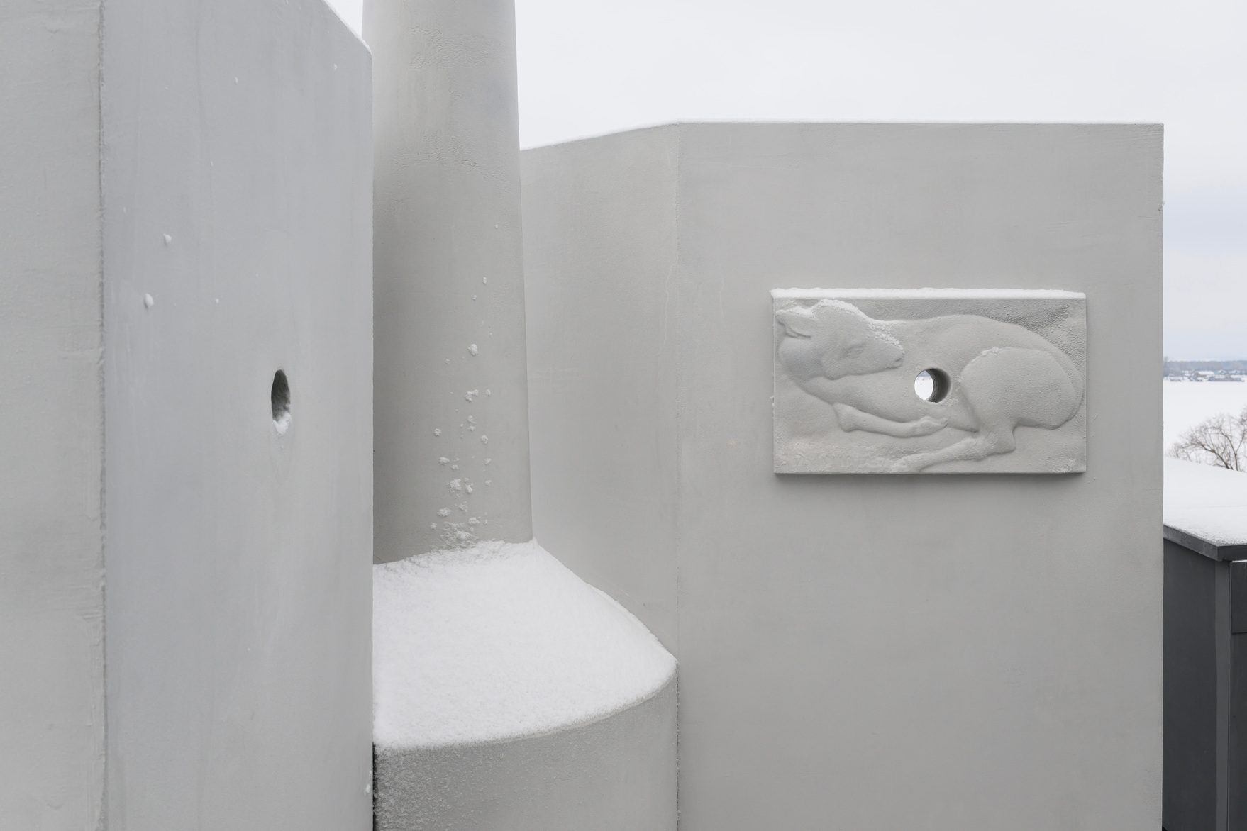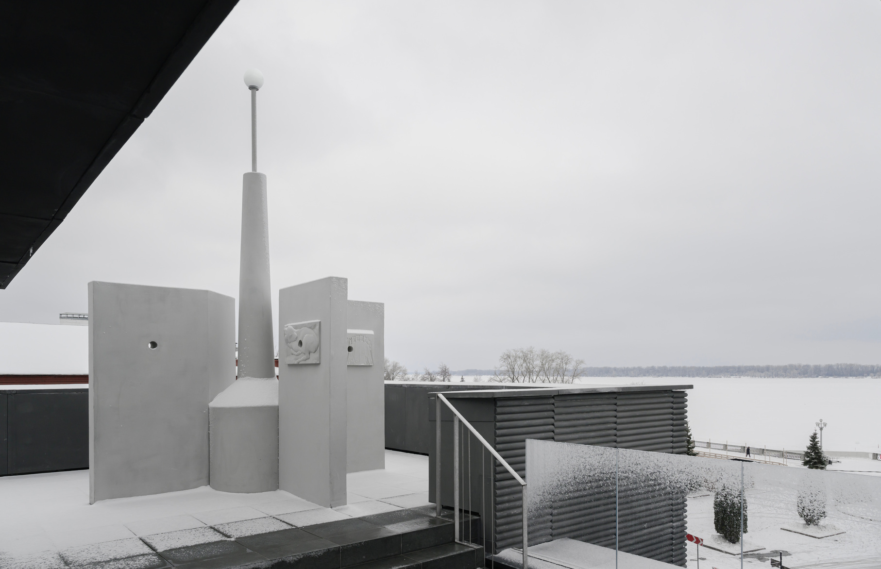 Сама инсталляция напоминает маяк, на поверхности работы размещены барельефы с сентиментальными сюжетами из поездки художника в Самару. На этих же плитах находятся отверстия диаметром с человеческое сердце, за счет которых объект взаимодействует с ветром и «дышит» даже когда галерея закрыта. Художника, кстати, многое связывает с этим Самарой и его жителями — его первый проект поддержали выходцы из города, а последней выставкой перед закрытием галереи «Виктория» на реконструкцию в 2022 году был его же проект «Вытеснение восполнений».