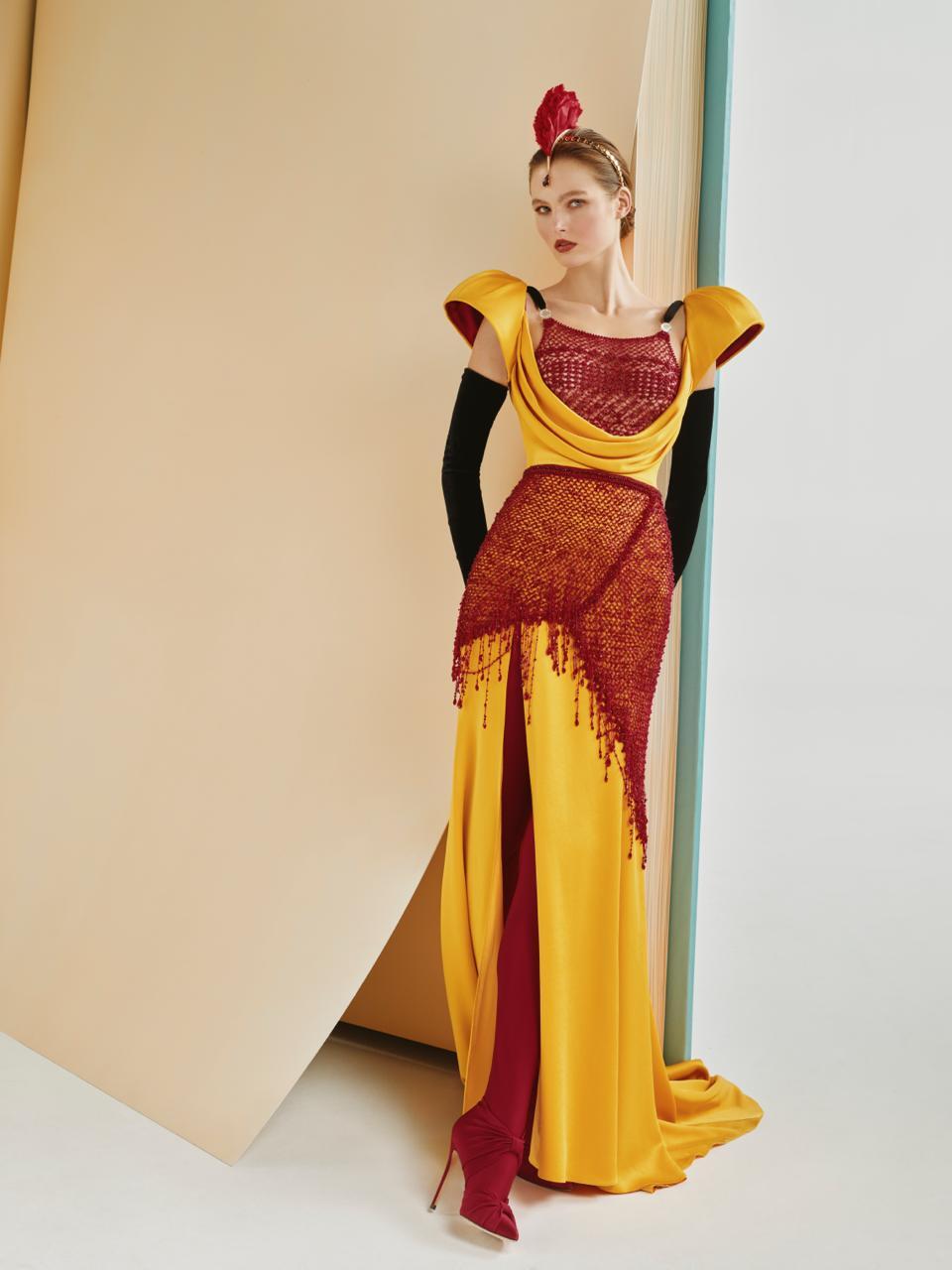Всего в коллекцию вошли 34 наряда, из которых модный дом особенно выделил образ «вдовы», отсылающий к финальному выходу Натальи Водяновой на первом кутюрном показе. Платок и платье расшиты сотнями рукотворных ягод голубики (только на их создание у мастеров ателье ушло не менее ста часов ручной работы).