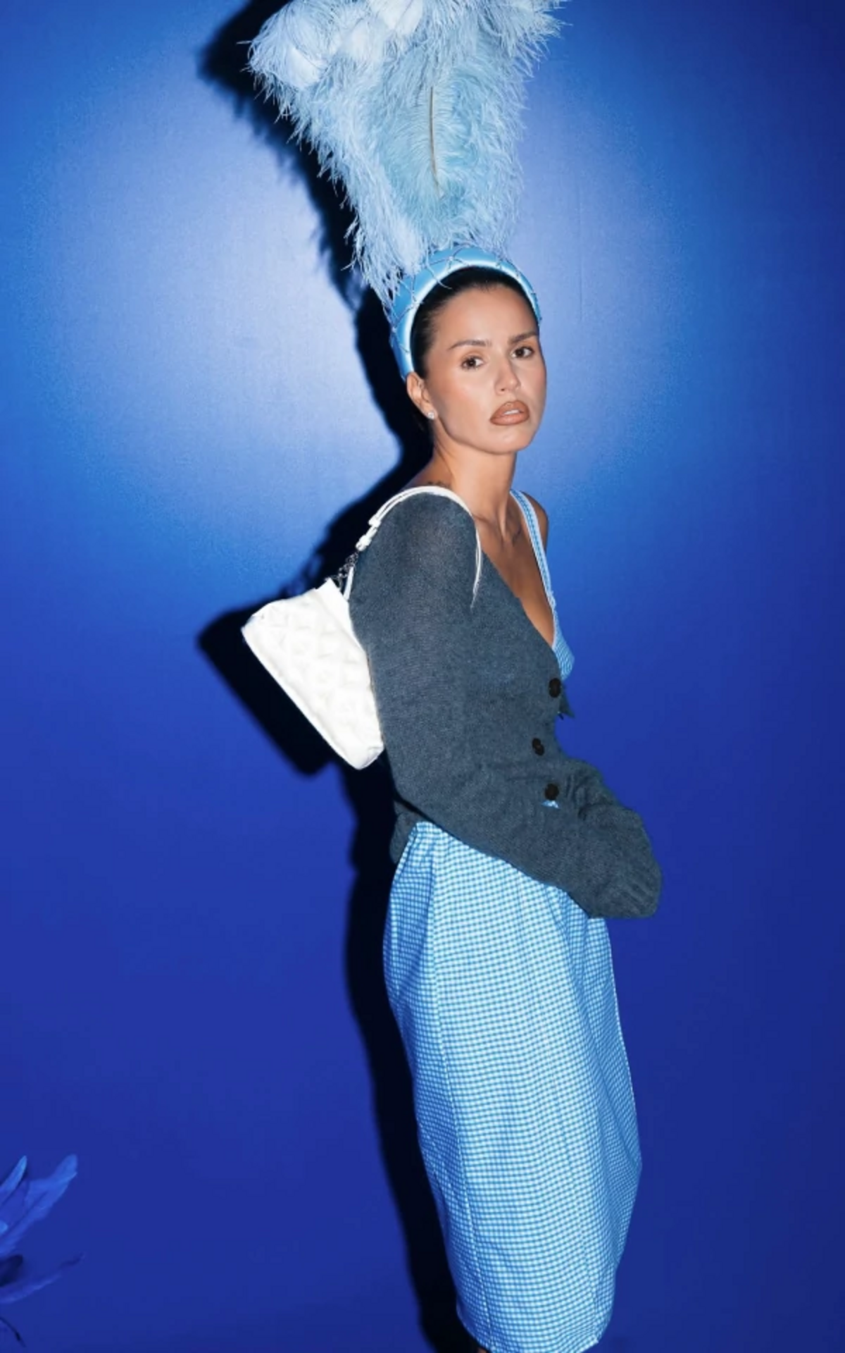«Этот образ мы собирали со всей любовью к The Blueprint. Я решила, что в него обязательно нужно добавить что-то голубое — в честь ДНК медиа. Выбрала юбку с показа Balenciaga Пьерпаоло Пиччоли. Как вы помните, я критиковала показ на канале, но решила дать видению дизайнера второй шанс — и не прогадала. Сама по себе жуткая стилизация вещей не играет новому концепту бренда на руку, но вещи супер красивые и качественные.