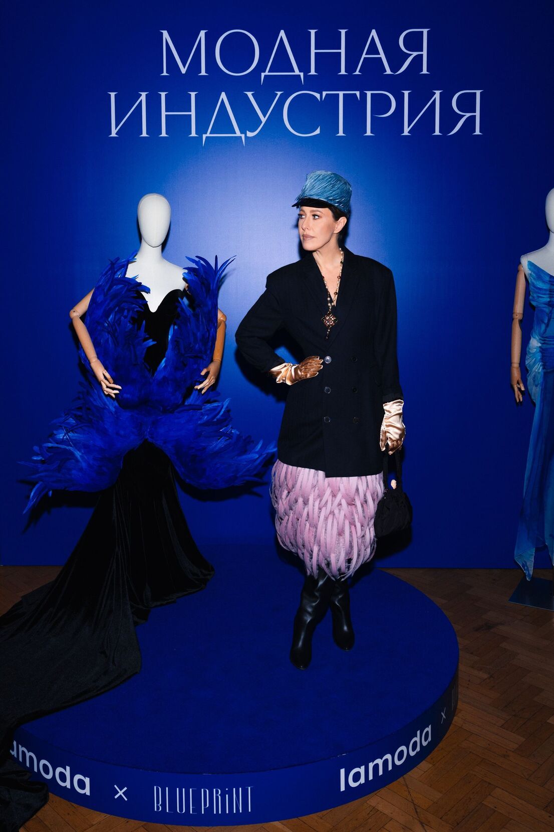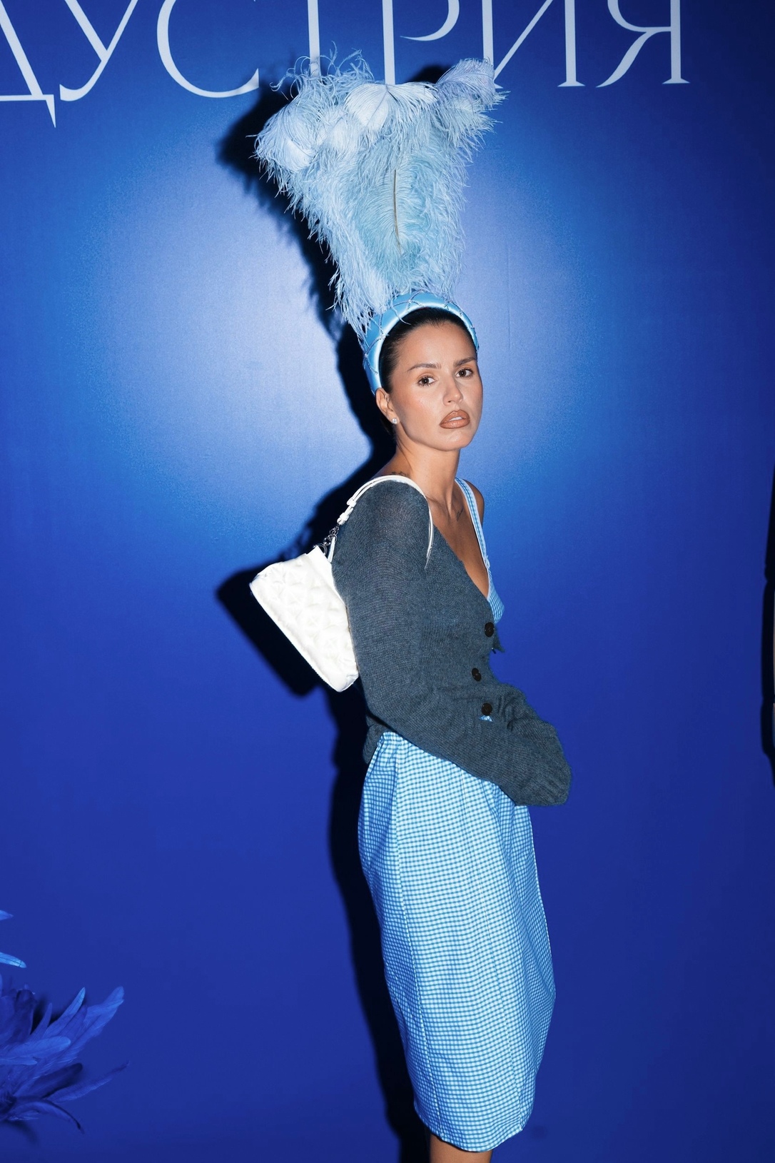 Собирая верх, мы проявили остроумие и использовали голубую кепочку с перьями Prada. Смешно, что на показе Пьерпаоло тоже были эти кепки, но, на мой взгляд, гораздо менее интересные и в других цветах. Здесь мы в каком-то смысле намекнули на улучшенную стилизацию с вариантом Prada. Сапоги, соответственно, The Row, а на руках вы можете заметить шелковые перчатки Prada», — рассказала Собчак.