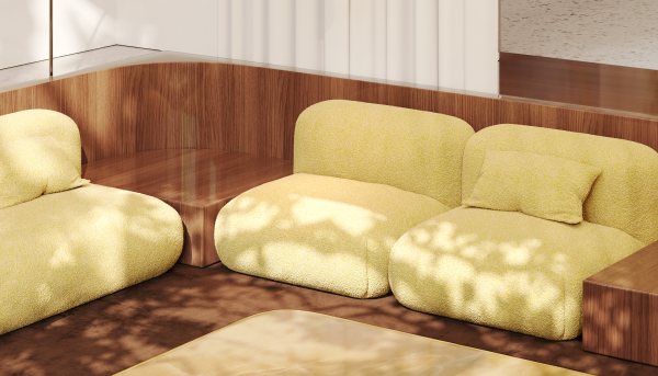 В основе интерьера — сочетание фирменных мягких, обтекаемых форм с классическими материалами. В проекте использованы лакированное дерево, текстиль и приглушенная цветовая палитра. Также для создания более камерной атмосферы дизайнеры отказались от холодного освещения в пользу теплого и нижнего света и добавили углубленную зону отдыха с диваном.