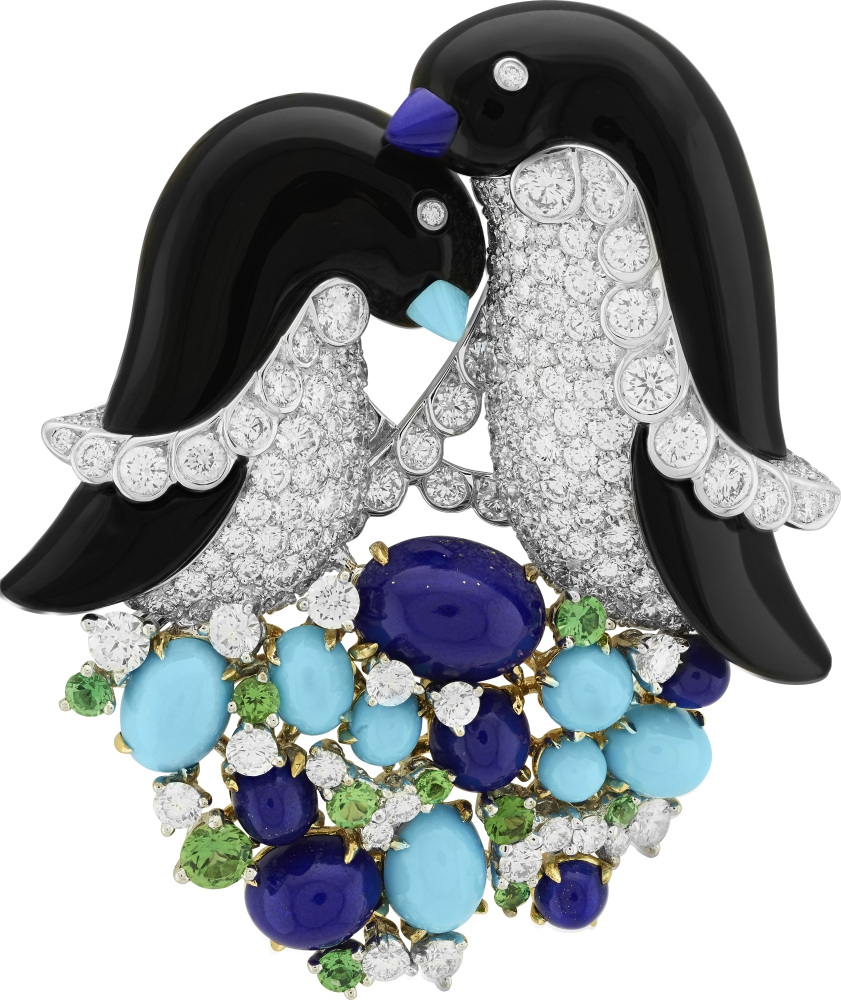 В московском бутике Van Cleef & Arpels появилась коллекция L’Arche de Noé — интерпретация сказания о Ноевом ковчеге. В нее вошли броши с изображением пар зверей, птиц и насекомых: попугаев, жирафов, гусей, обезьян, слонов, кенгуру, пингвинов, божьих коровок. Всего 60 пар. Коллекцию дополняют выдуманные существа: пегас, единорог и феникс. В прошлом году эти броши стали частью выставки Van Cleef & Arpels, работу над которой доверили театральному режиссеру Роберту Уилсону.