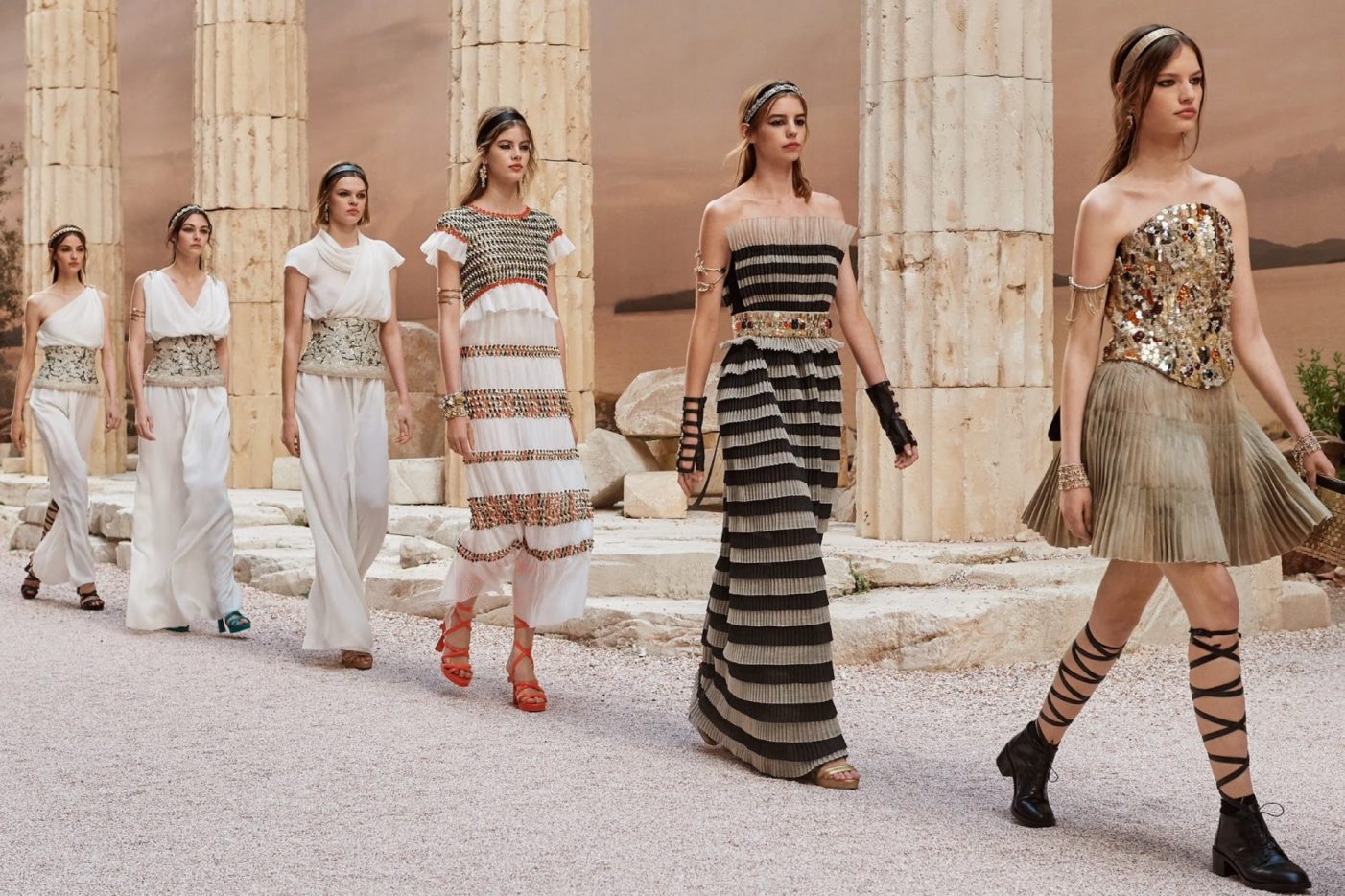 Chanel решили повторить круизный показ, который прошел в мае в парижском Гран-Пале. Посмотреть на коллекцию Resort 2018 можно будет 7 ноября – шоу пройдет в китайском городе Чэнду. Основной темой коллекции стала Древняя Греция. В нее вошли сандалии, венки, а также платья, напоминающие хитоны. Показ проходил в декорациях разрушенного греческого города.