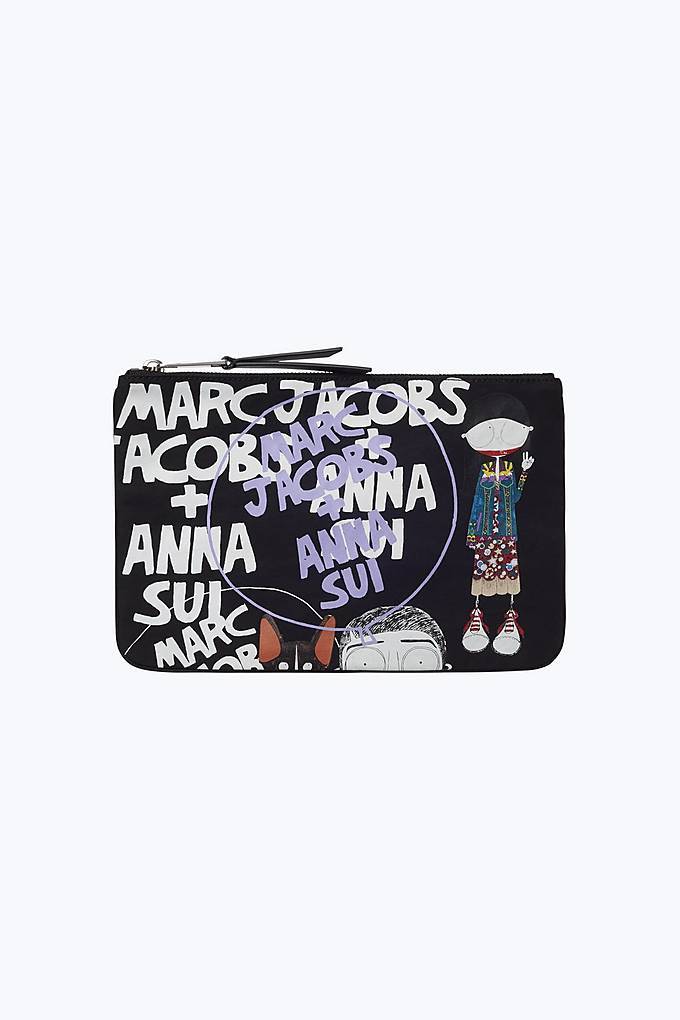 Дизайнеры Марк Джейкобс и Анна Суи вместе учились в Parsons и с тех пор их связывает крепкая дружба. А теперь они решили выпустить коллаборацию. В совместную коллекцию вошли ироничные сумки, брелки, слипоны и футболки и толстовки с принтами. На всех предметах коллекции – иллюстрации Уилла Брума, который нередко придумывал орнаменты для коллекций Marc Jacobs. На этот раз он в карикатурной манере изобразил самих Марка и Анну и пса Джейкобса Невилла. Коллекция будет продаваться в магазинах обоих дизайнеров, диапазон цен – от $65 за брелок до $395 за большую сумку.