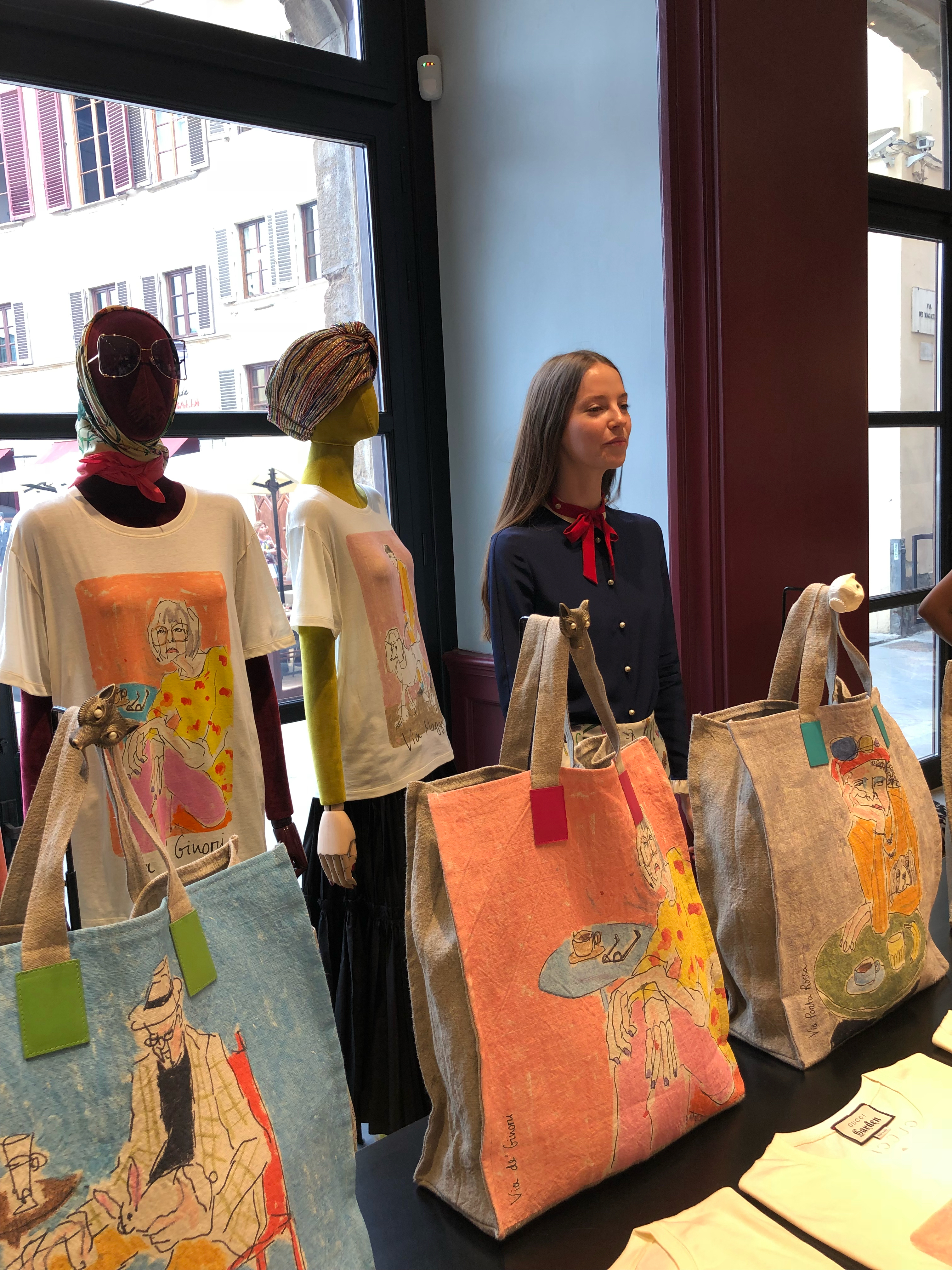 Gucci выпустили коллекцию с иллюстрациями 23-летней художницы из Лондона Изабеллы Котье. Она зарисовывает гуашью портреты людей, которых встречает на улице и в кафе. В коллекцию вошли свитшоты, футболки и холщовые сумки с восемью персонажами из набросков Котье, которые она сделала во Флоренции. Купить вещи можно в Gucci Garden.