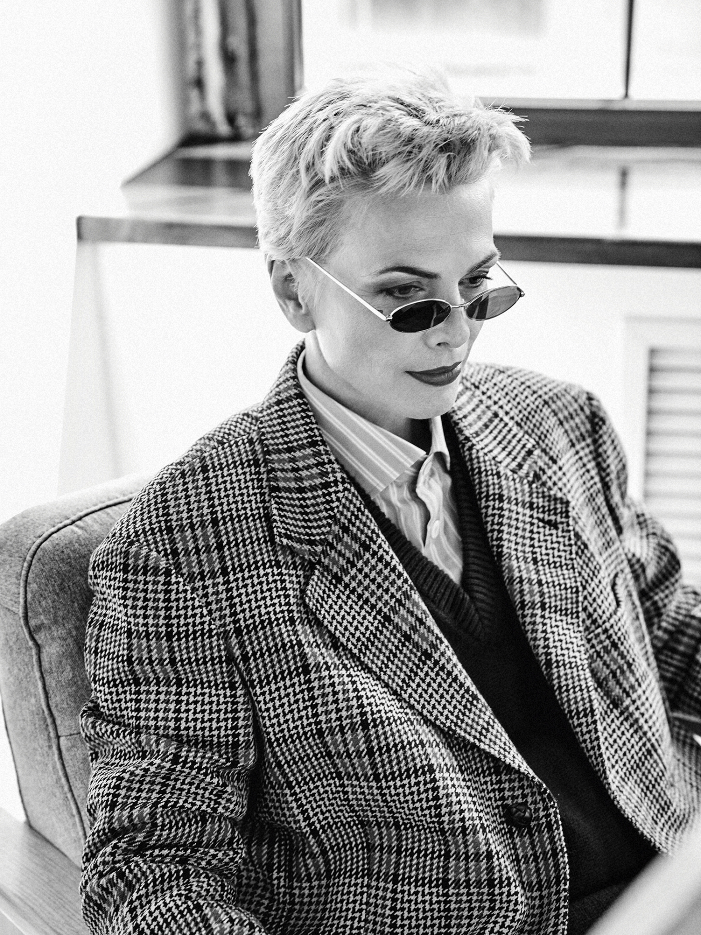 Художница Галина Смирнская стала героиней новой съемки, где она предстала в образе певицы Энни Леннокс. Ее снял фотограф Павел Крюков, а стилизовала Лада Арзуманова. В кадре Галина повторяет знаменитые образы Леннокс и позирует в брюках с подтяжками Prada и красных перчатках Max Mara, в кожаном плаще Antsiferov и очках Fakoshima, пиджаке Gucci, винтажных украшениях и не только.