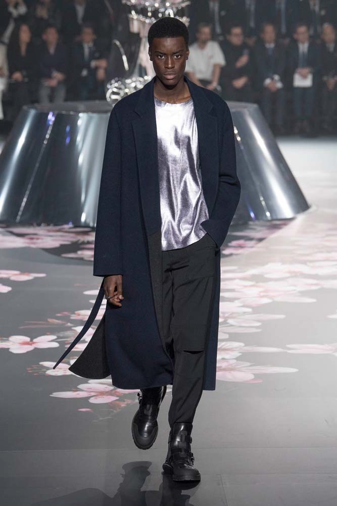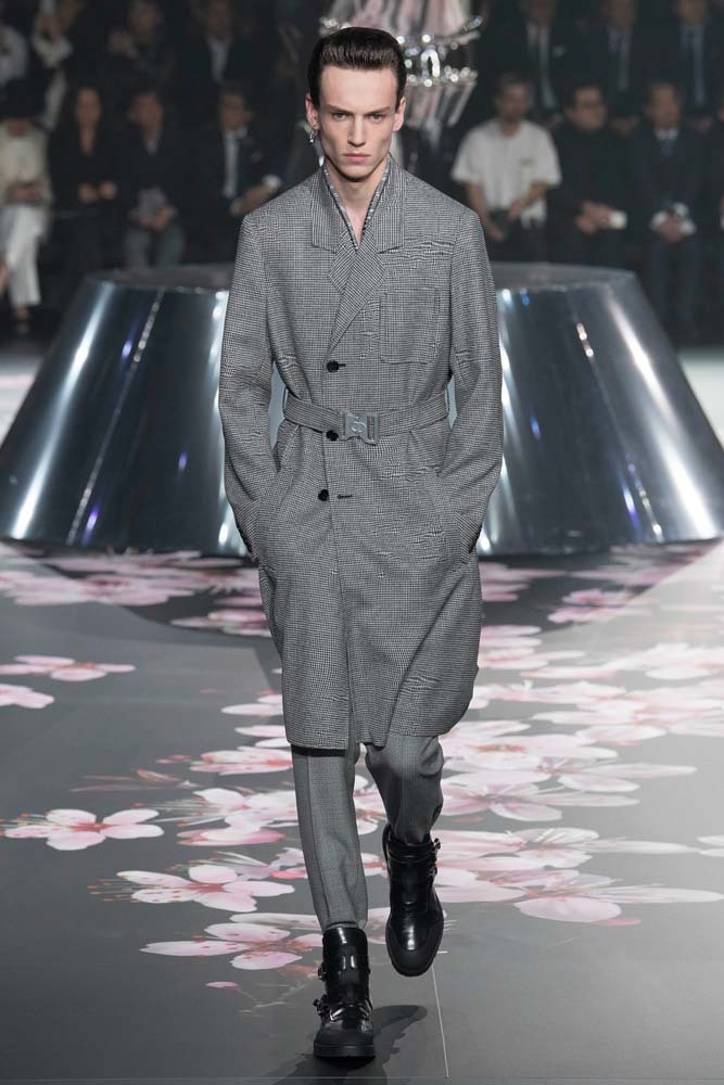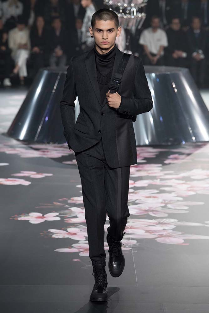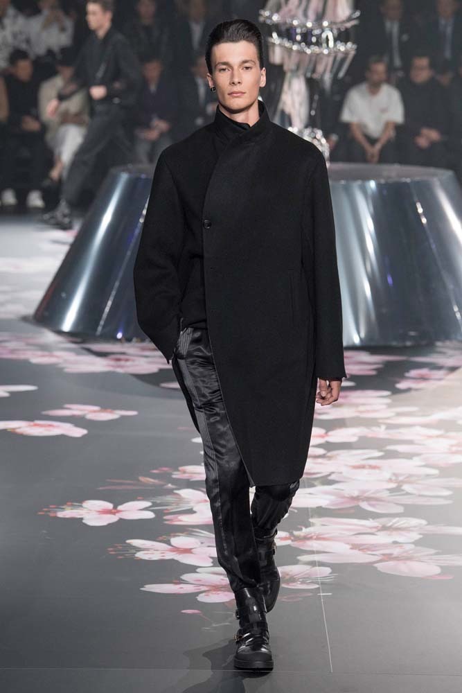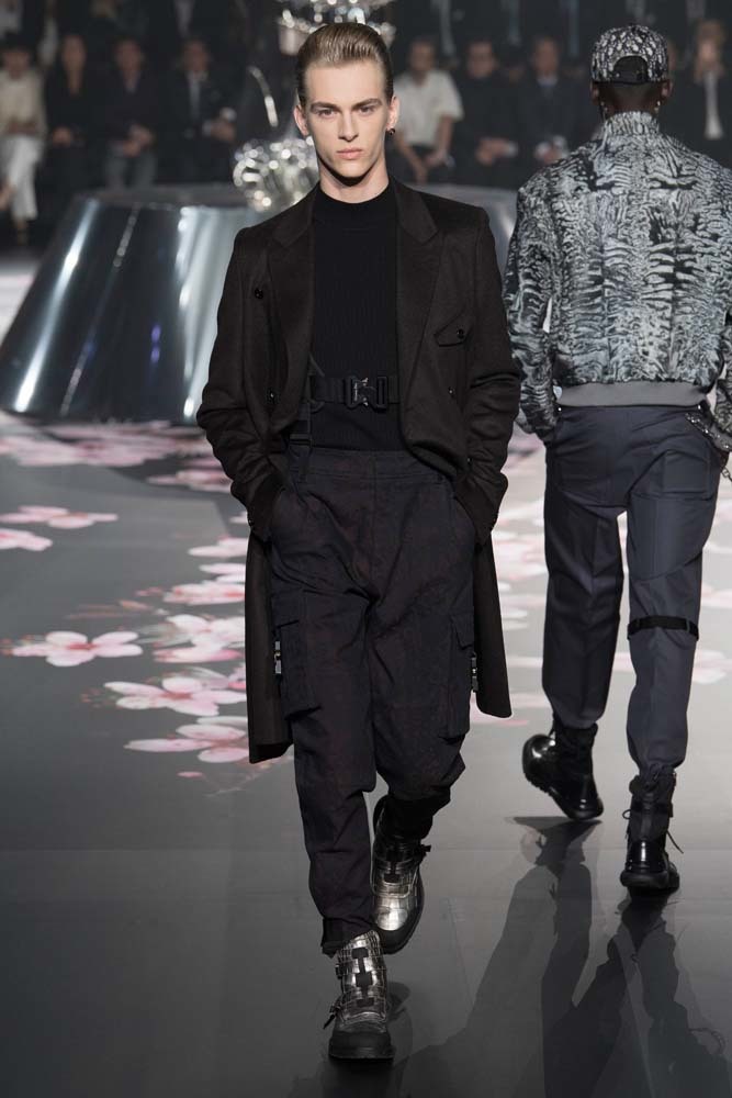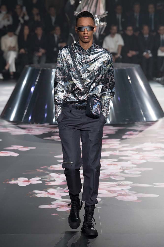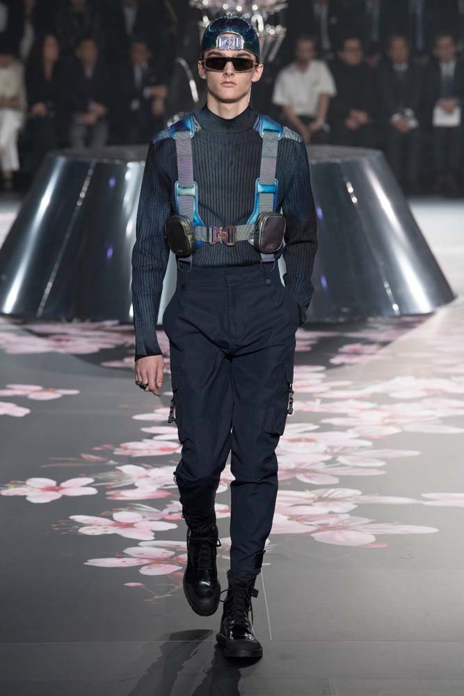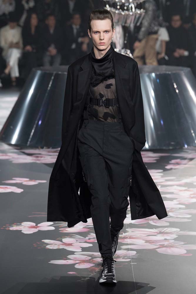 В Токио прошел показ мужской pre-fall-коллекции Dior. Креативный директор мужской линии бренда Ким Джонс позвал японского художника Хадзимэ Сораяму оформлять пространство: посреди подиума возвышалась 10-метровая футуристичная серебряная скульптура (в прошлый раз подиум тоже украшала огромная инсталляция). В одежде тоже было немало футуристичных элементов: светоотражающие линии, блестящие куртки, похожие на космические комбинезоны. А знаменитая модель седельной сумки предстала в виде маленького кошелька, подвешивающегося на ремень.