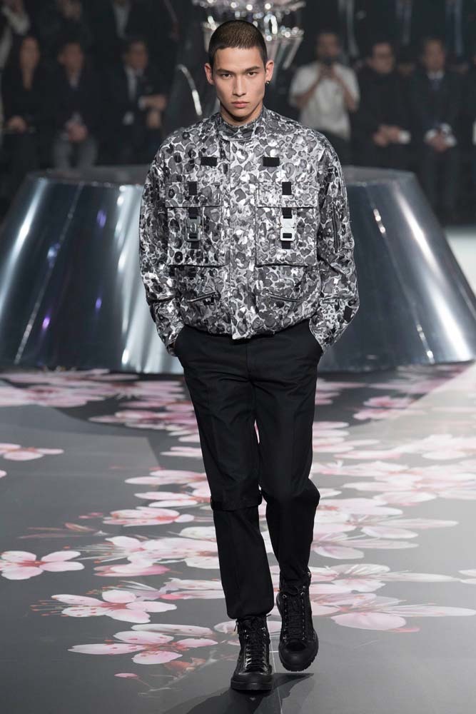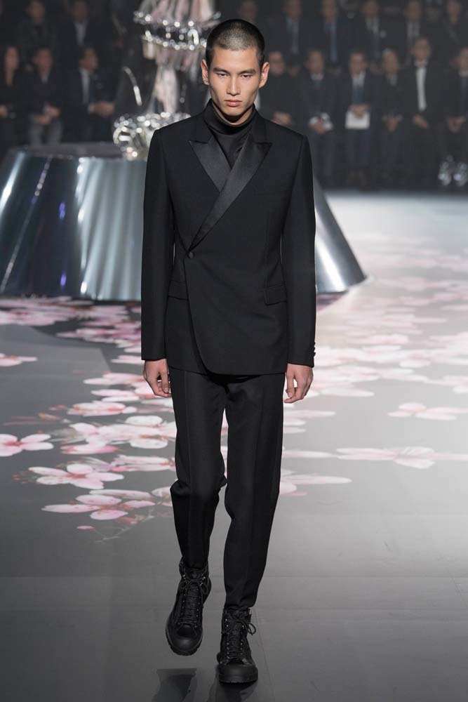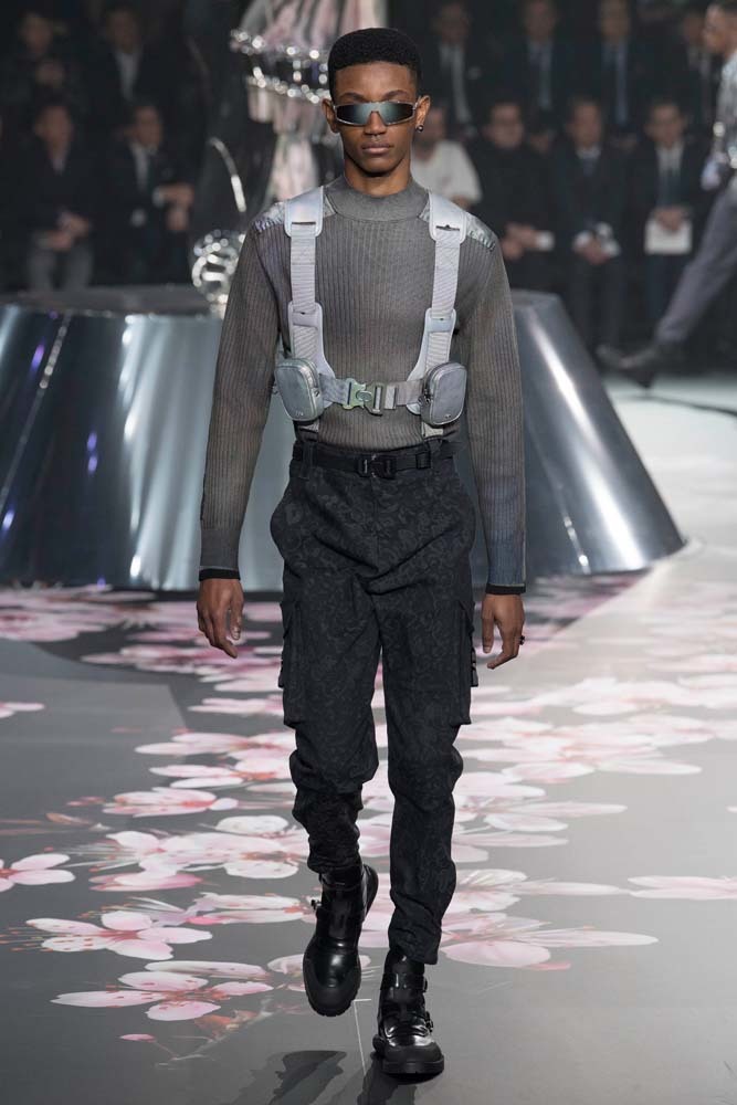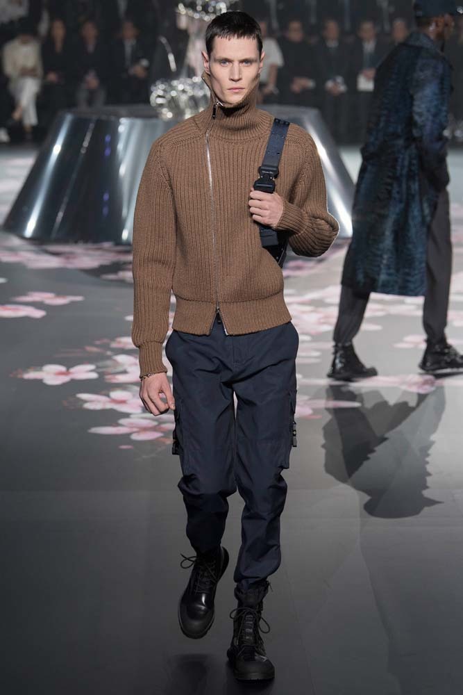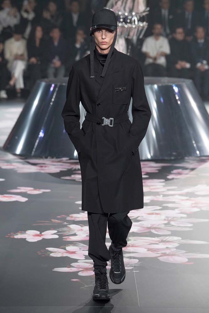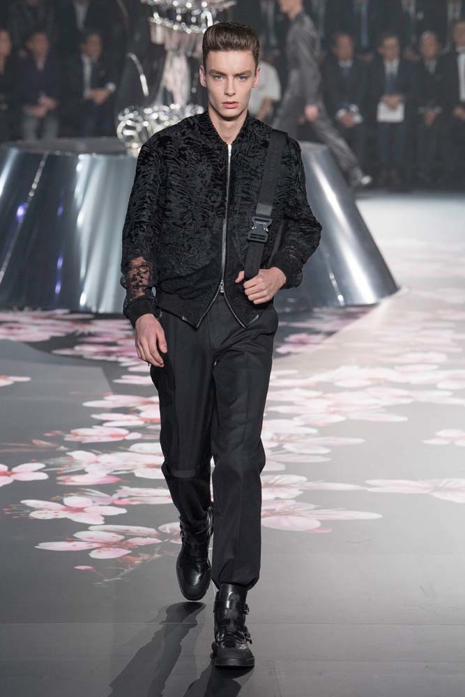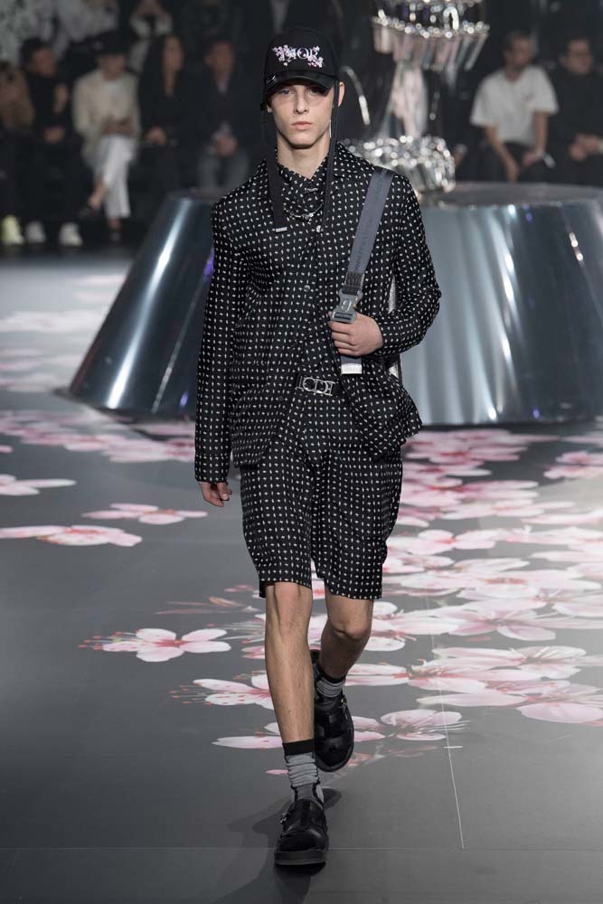 В Токио прошел показ мужской pre-fall-коллекции Dior. Креативный директор мужской линии бренда Ким Джонс позвал японского художника Хадзимэ Сораяму оформлять пространство: посреди подиума возвышалась 10-метровая футуристичная серебряная скульптура (в прошлый раз подиум тоже украшала огромная инсталляция). В одежде тоже было немало футуристичных элементов: светоотражающие линии, блестящие куртки, похожие на космические комбинезоны. А знаменитая модель седельной сумки предстала в виде маленького кошелька, подвешивающегося на ремень.