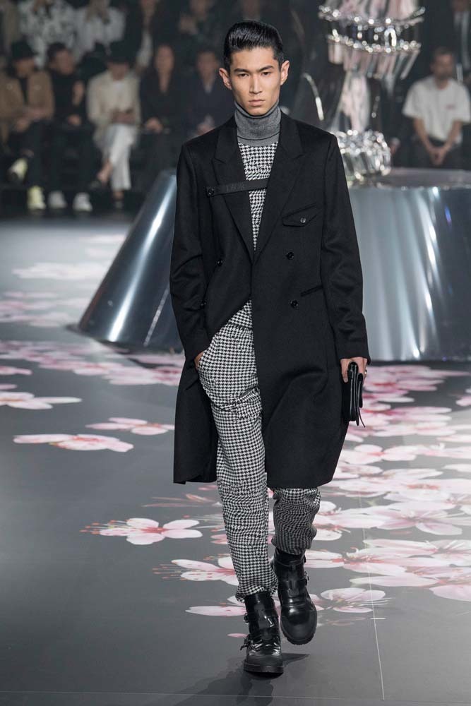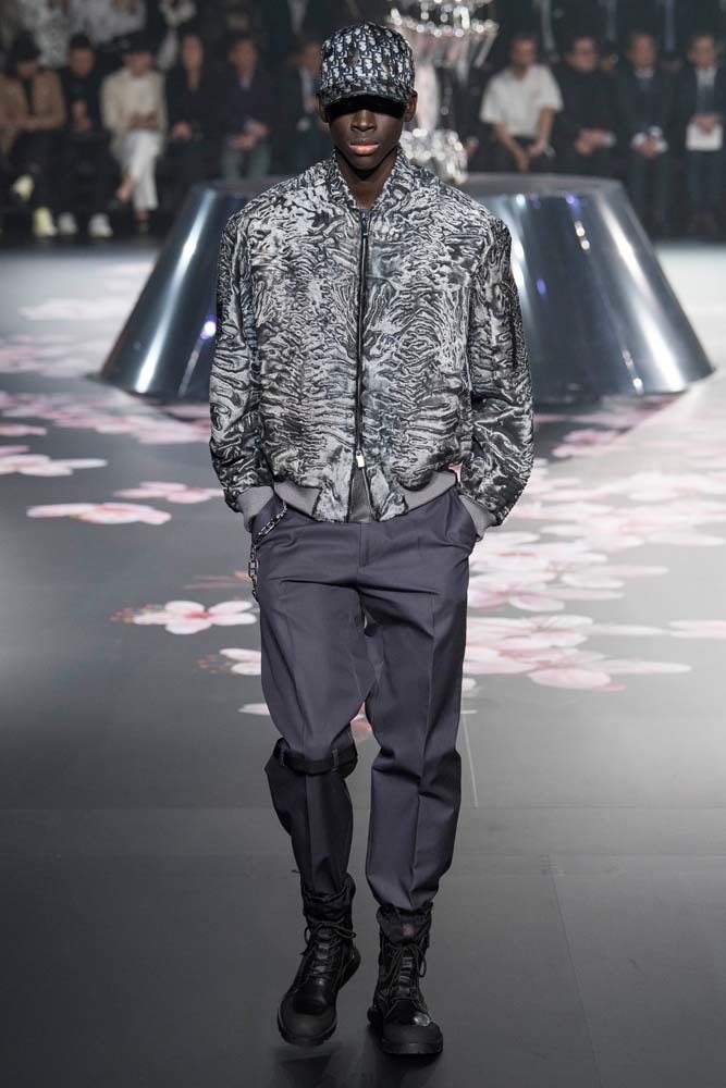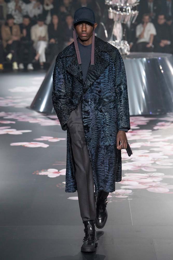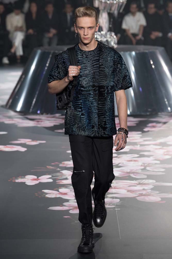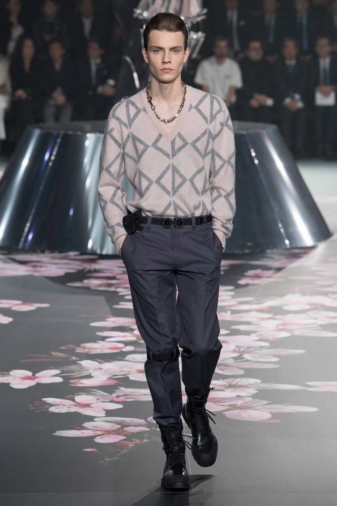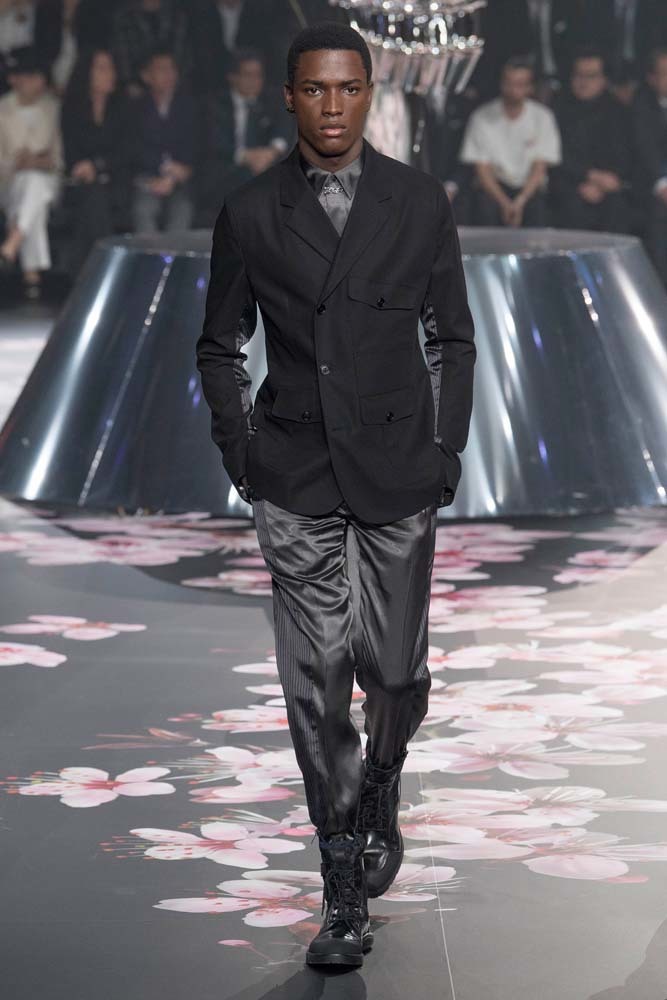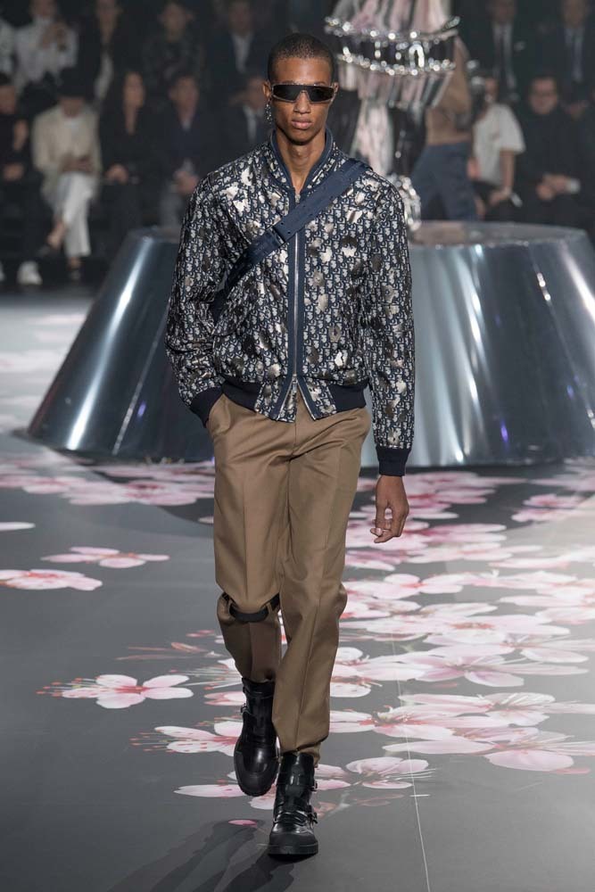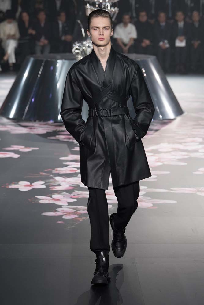 В Токио прошел показ мужской pre-fall-коллекции Dior. Креативный директор мужской линии бренда Ким Джонс позвал японского художника Хадзимэ Сораяму оформлять пространство: посреди подиума возвышалась 10-метровая футуристичная серебряная скульптура (в прошлый раз подиум тоже украшала огромная инсталляция). В одежде тоже было немало футуристичных элементов: светоотражающие линии, блестящие куртки, похожие на космические комбинезоны. А знаменитая модель седельной сумки предстала в виде маленького кошелька, подвешивающегося на ремень.