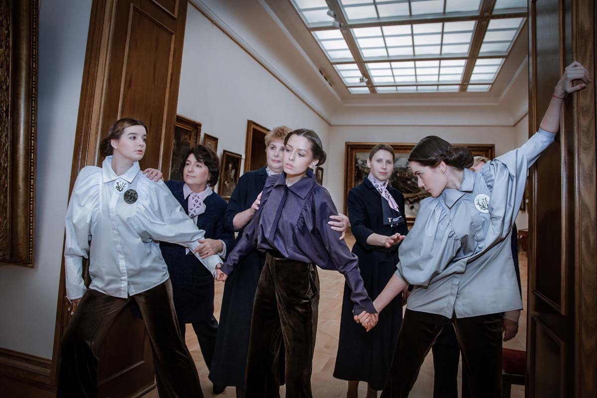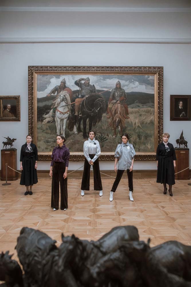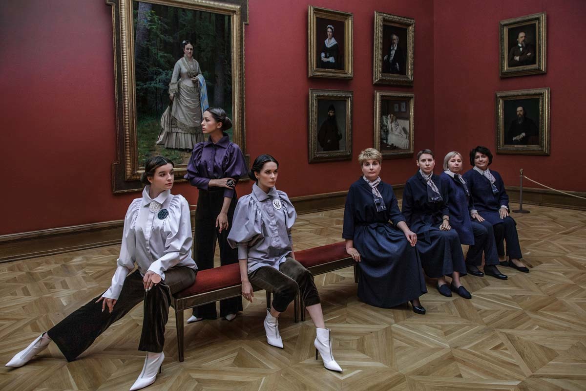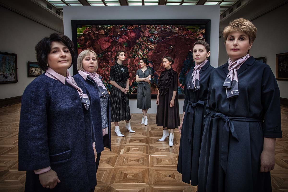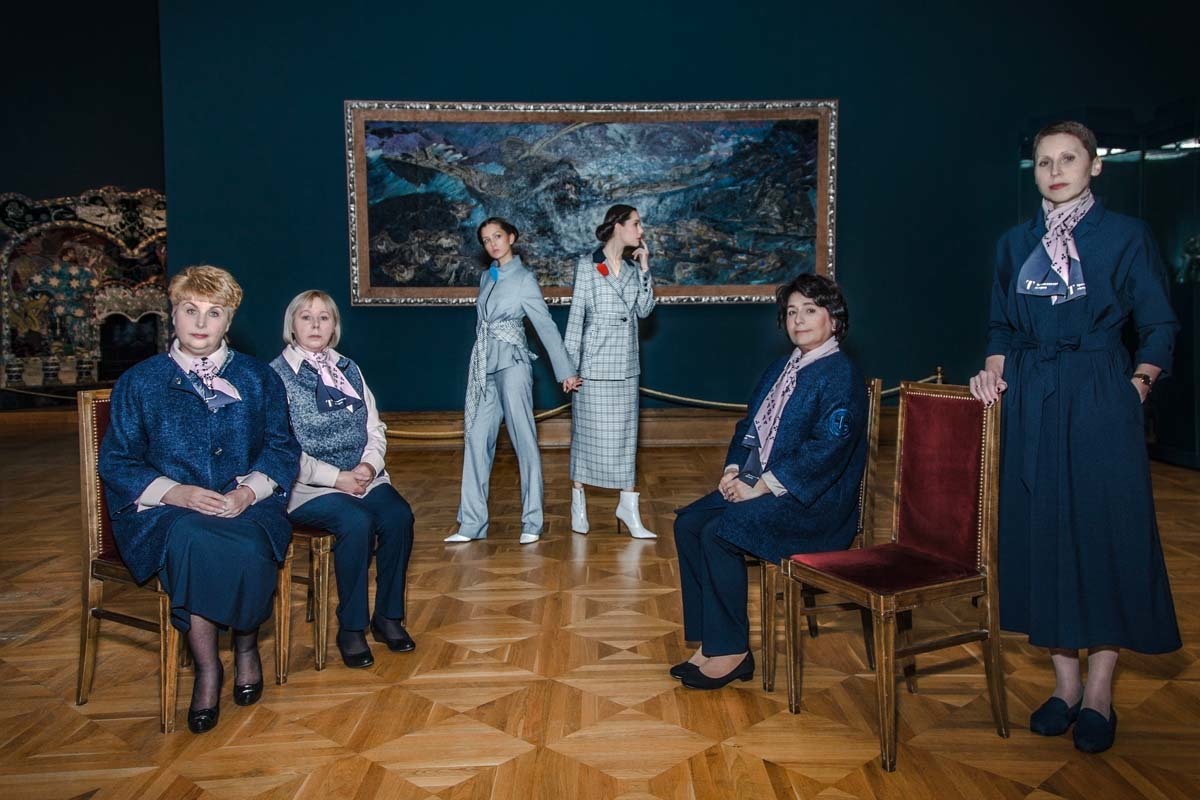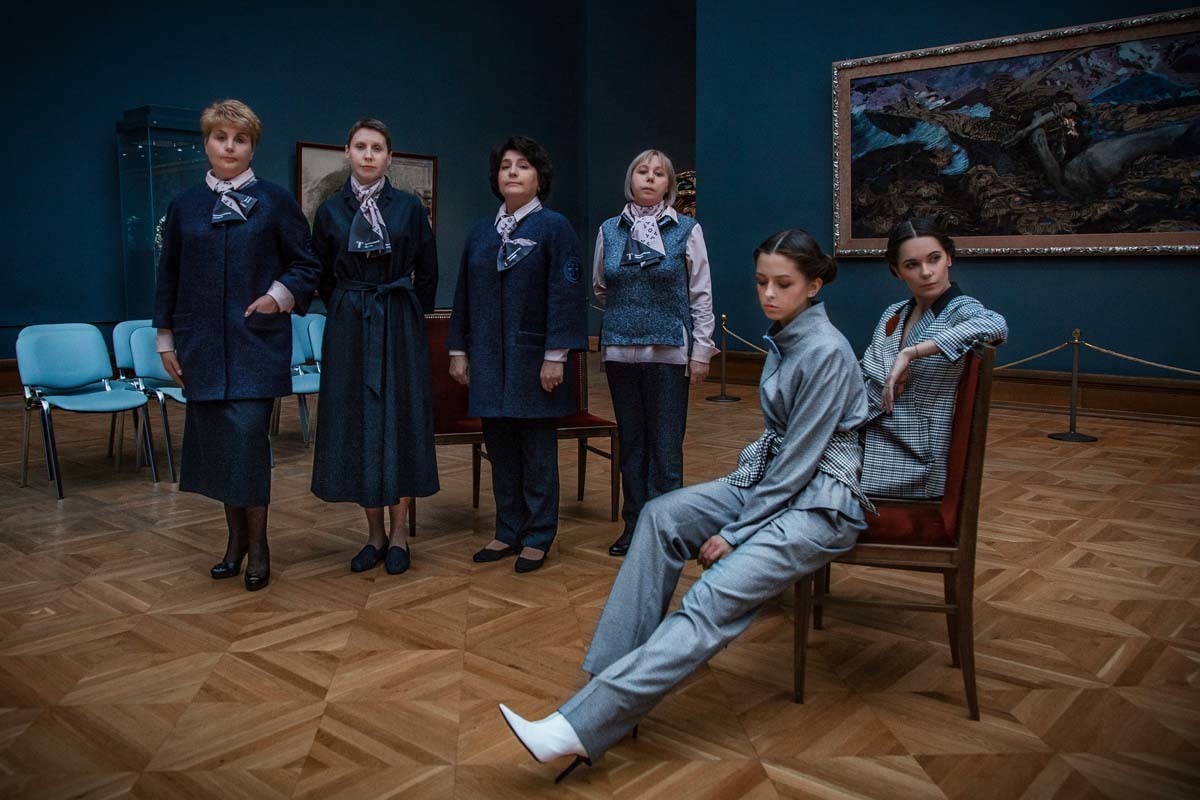 Дизайнер Виктория Андреянова разработала новую форменную одежду для сотрудников Третьяковской галереи. Она взяла за основутемно-синий цвет и придумала несколько вариантов формы – платья, костюмы с юбкой и брюками, которые дополняет пудрово-розовая блузка. Логотип галереи видоизменили и сделали декором. В съемке новой формы вместе со смотрительницами Третьяковки приняли участие Елизавета Костюкова, Александра Стриженова и Дарья Авратинская.