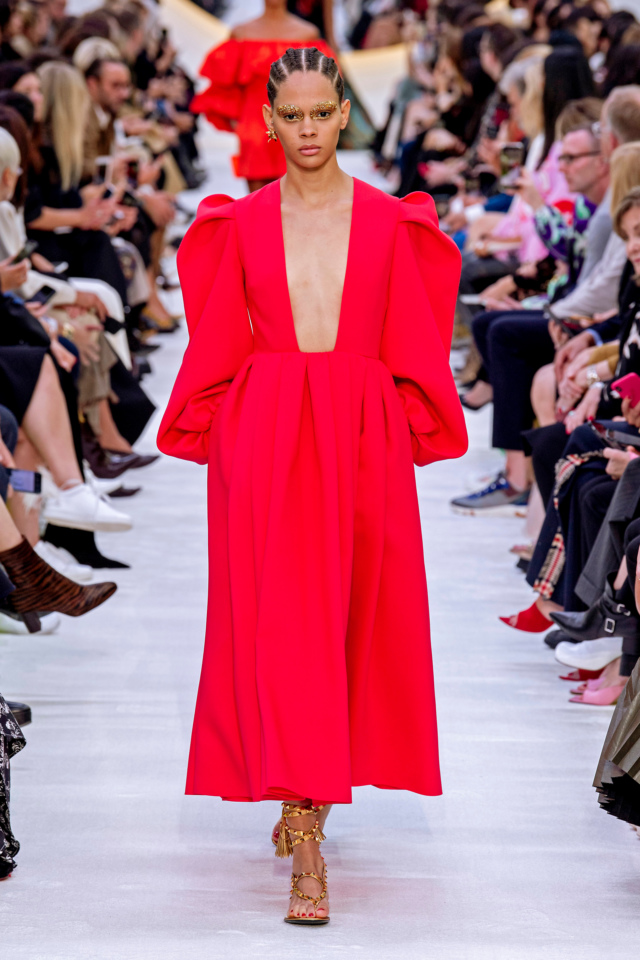 Примерно такими же фасонами прославился за десять лет до этого (до СССР все мировые тренды доходили с опозданием лет в десять) любимчик нью-йоркской тусовки дизайнер Рой Холстон, а в коллекции Valentino весна–лето 2020 Пьерпаоло Пиччоли представил платье с таким же глубоким вырезом — и тоже красное.